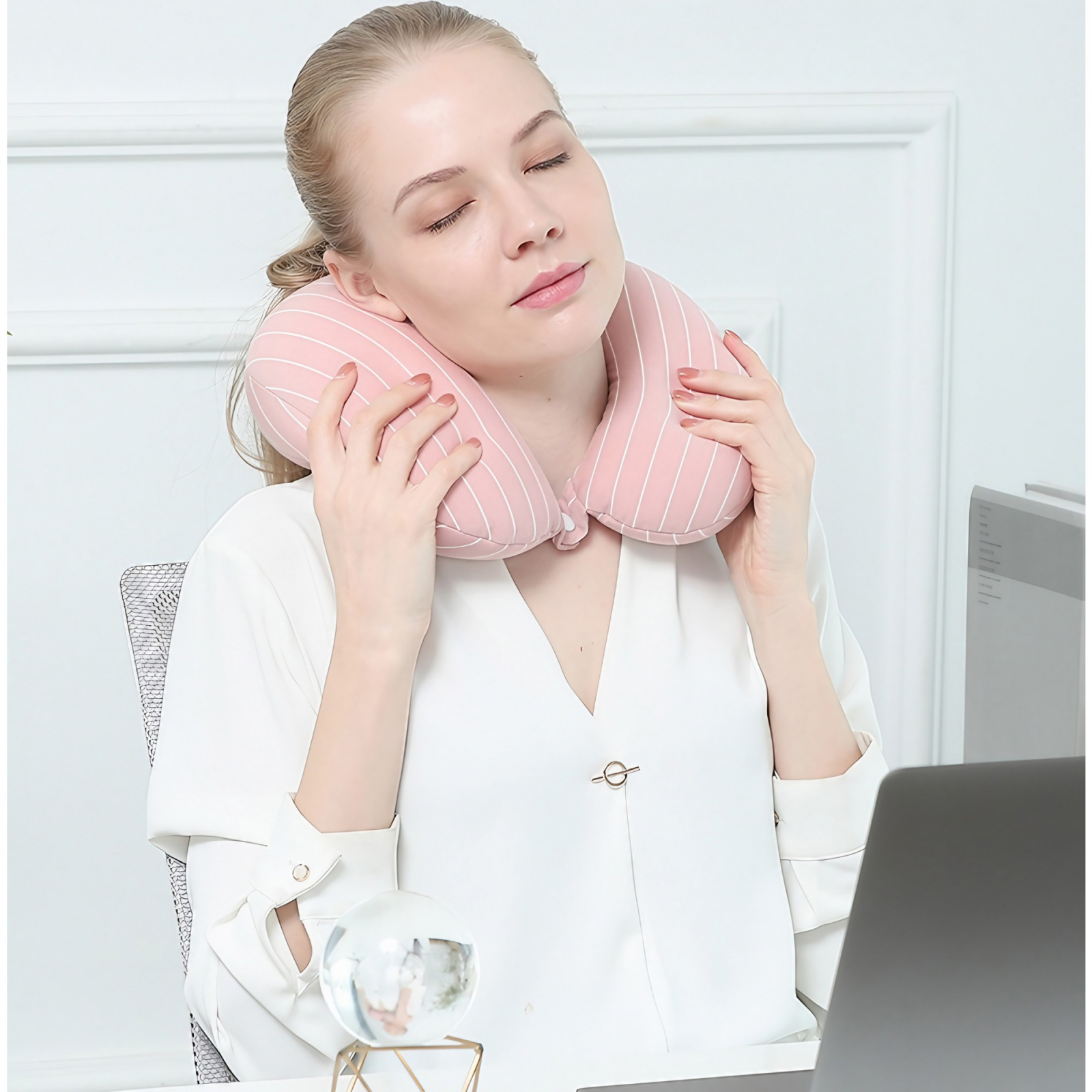 Descoperă confortul suprem în orice călătorie sau moment aglomerat la birou cu perna noastră inovatoare pentru susținerea coloanei cervicale - un partener de încredere pentru fiecare zi agitată! Cu forma sa de U ingenios concepută, perna noastră oferă un suport integral pentru cap în orice direcție.