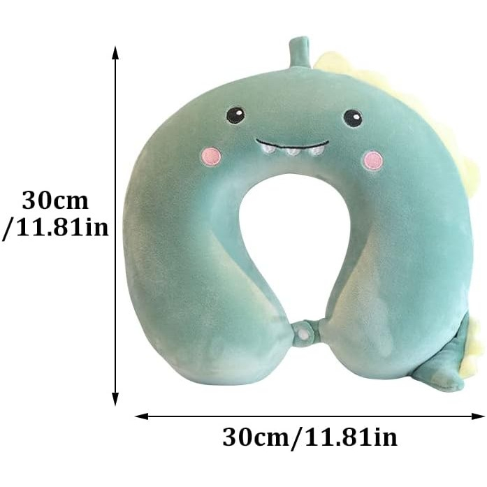 Perna de Calatorie in Forma de U, , Pentru Gat si Cap, Umplutura din Spuma cu Memorie, 30x30 cm, Model Dinozaur, Accesoriu de Voiaj, Birou, Masina, Sistem Prindere Capse, Verde
