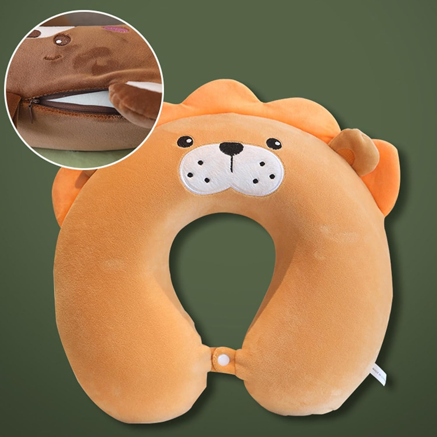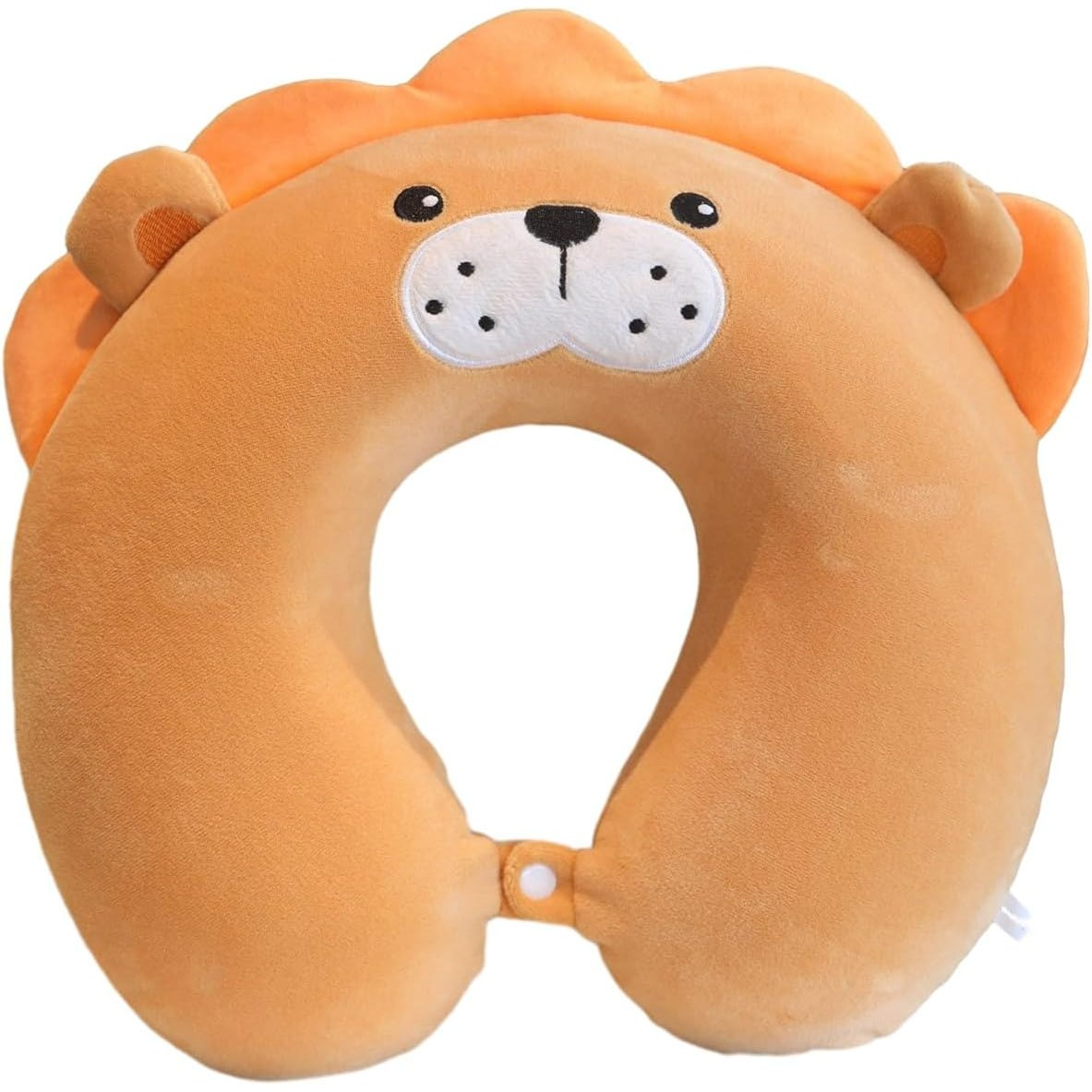 Perna de Calatorie in Forma de U, , Pentru Gat si Cap, Umplutura din Spuma cu Memorie, 30x30 cm, Model Leu, Accesoriu de Voiaj, Birou, Masina, Sistem Prindere Capse, Maro