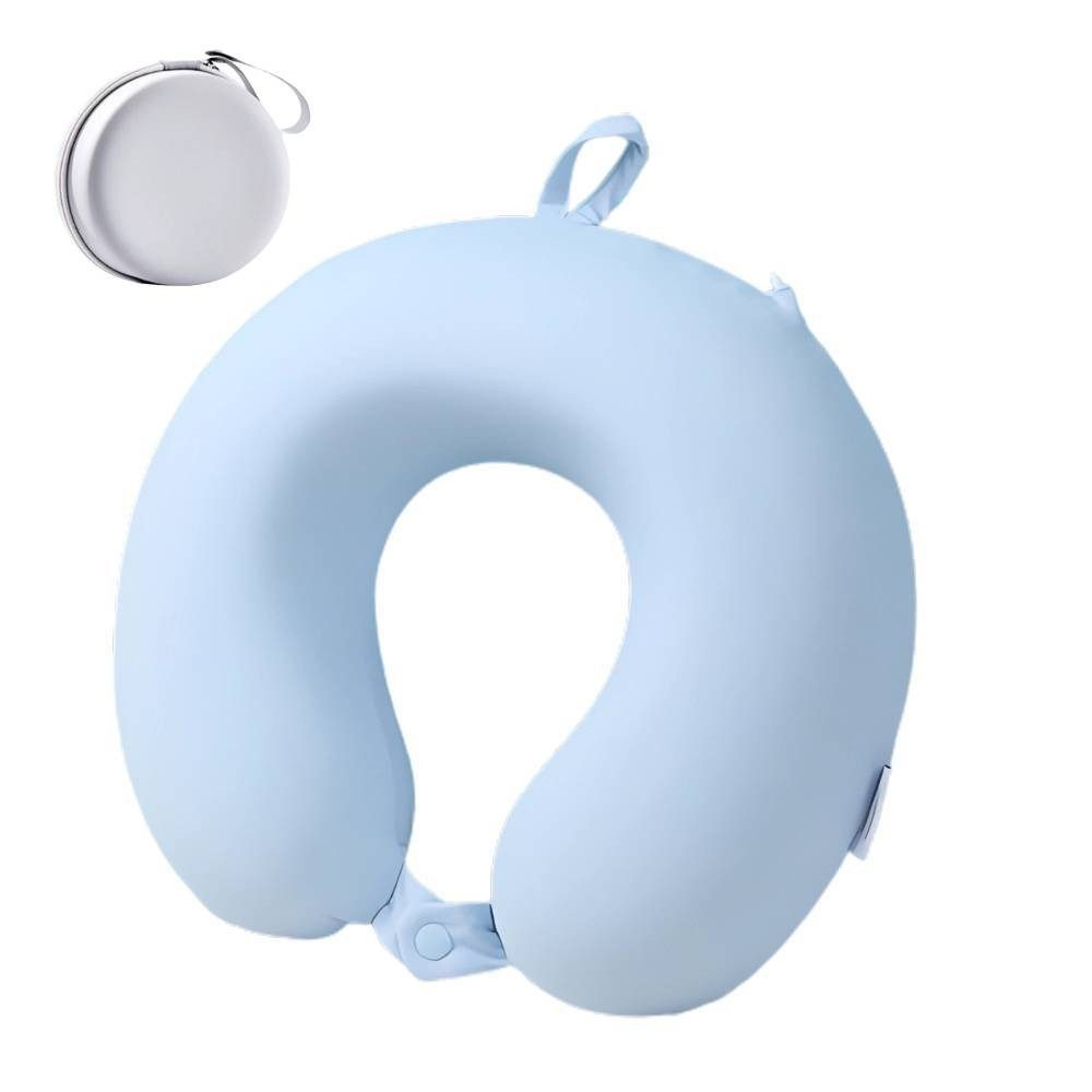 Perna de Calatorie in Forma de U, , Pentru Gat si Cap, Umplutura din Spuma cu Memorie, 30x30 cm, Sistem Prindere Capse, Cutie de Depozitare, Bleu