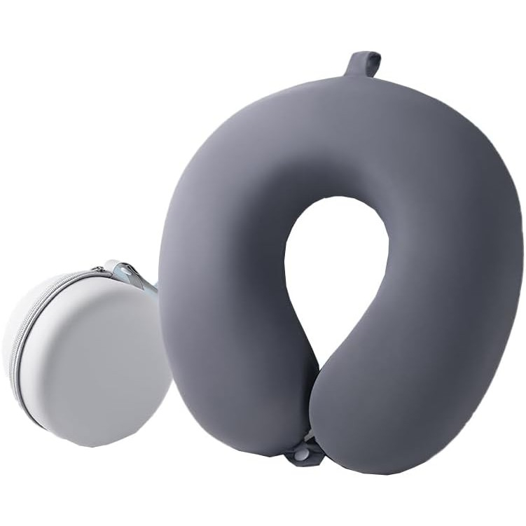 Perna de Calatorie in Forma de U, , Pentru Gat si Cap, Umplutura din Spuma cu Memorie, 30x30 cm, Sistem Prindere Capse, Cutie de Depozitare, Gri
