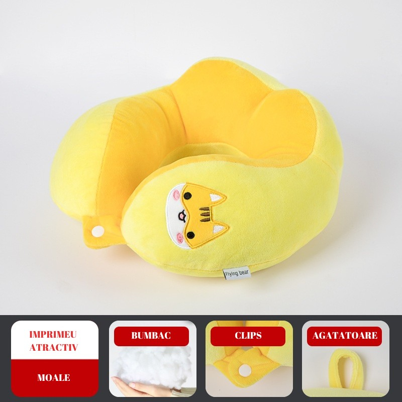Informatii utile: Inaltime:10 cm, Latime:28 cm, Lungime:28 cm, Tip produs:Perna de calatorie, Material:Spandex Bumbac, Caracteristici cheie:Calatorie Confera un somn mai linistit Pentru avion Perna de gat Perna de voiaj Perna de calatorie Portabil Material rezistent, Greutate:0.220 g, Continut pachet:Perna de Calatorie, , Pentru Gat si Cap, Umplutura din Bumbac, cu Model Brodat Pisica, Galben, Culoare:Galben