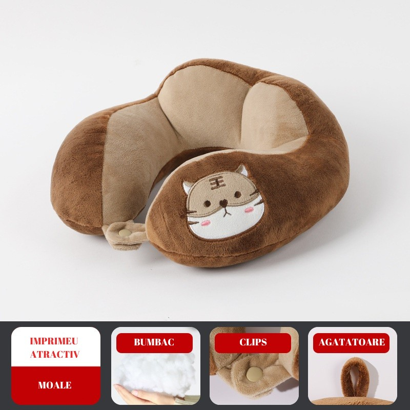 Informatii utile: Inaltime:10 cm, Culoare:Maro, Latime:28 cm, Lungime:28 cm, Tip produs:Perna de calatorie, Material:Spandex Bumbac, Caracteristici cheie:Calatorie Confera un somn mai linistit Pentru avion Perna de gat Perna de voiaj Perna de calatorie Portabil Material rezistent, Greutate:0.220 g, Continut pachet:Perna de Calatorie, , Pentru Gat si Cap, Umplutura din Bumbac, cu Model Brodat Pisica, Maro