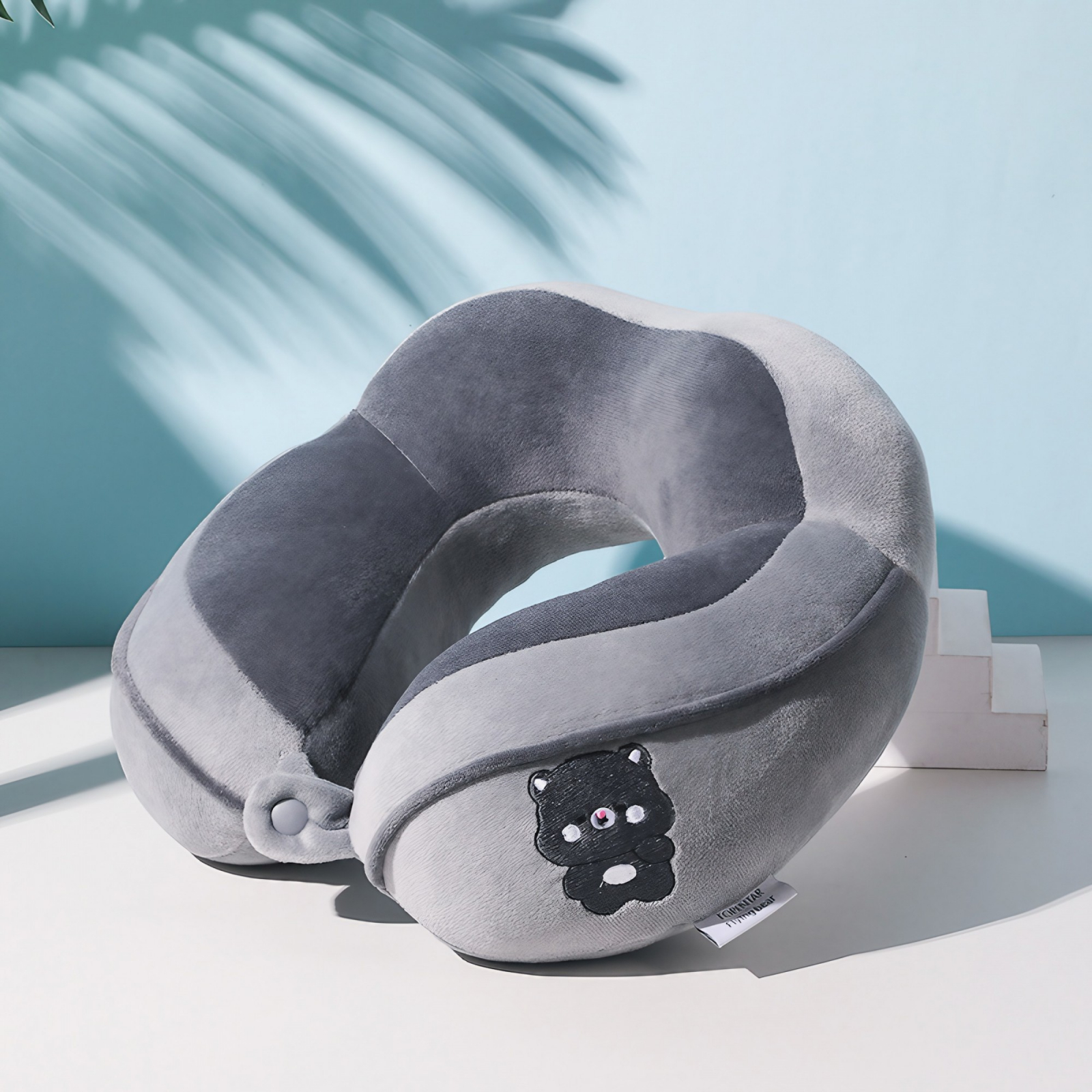 Informatii utile: Inaltime:10 cm, Latime:28 cm, Lungime:28 cm, Tip produs:Perna de calatorie, Material:Spandex Bumbac, Greutate:0.268 g, Caracteristici cheie:Calatorie Confera un somn mai linistit Pentru avion Perna de gat Perna de voiaj Perna de calatorie Portabil Material rezistent, Continut pachet:Perna de Calatorie, , Pentru Gat si Cap, Umplutura din Bumbac, cu Model Brodat Urs, Gri, Culoare:Gri