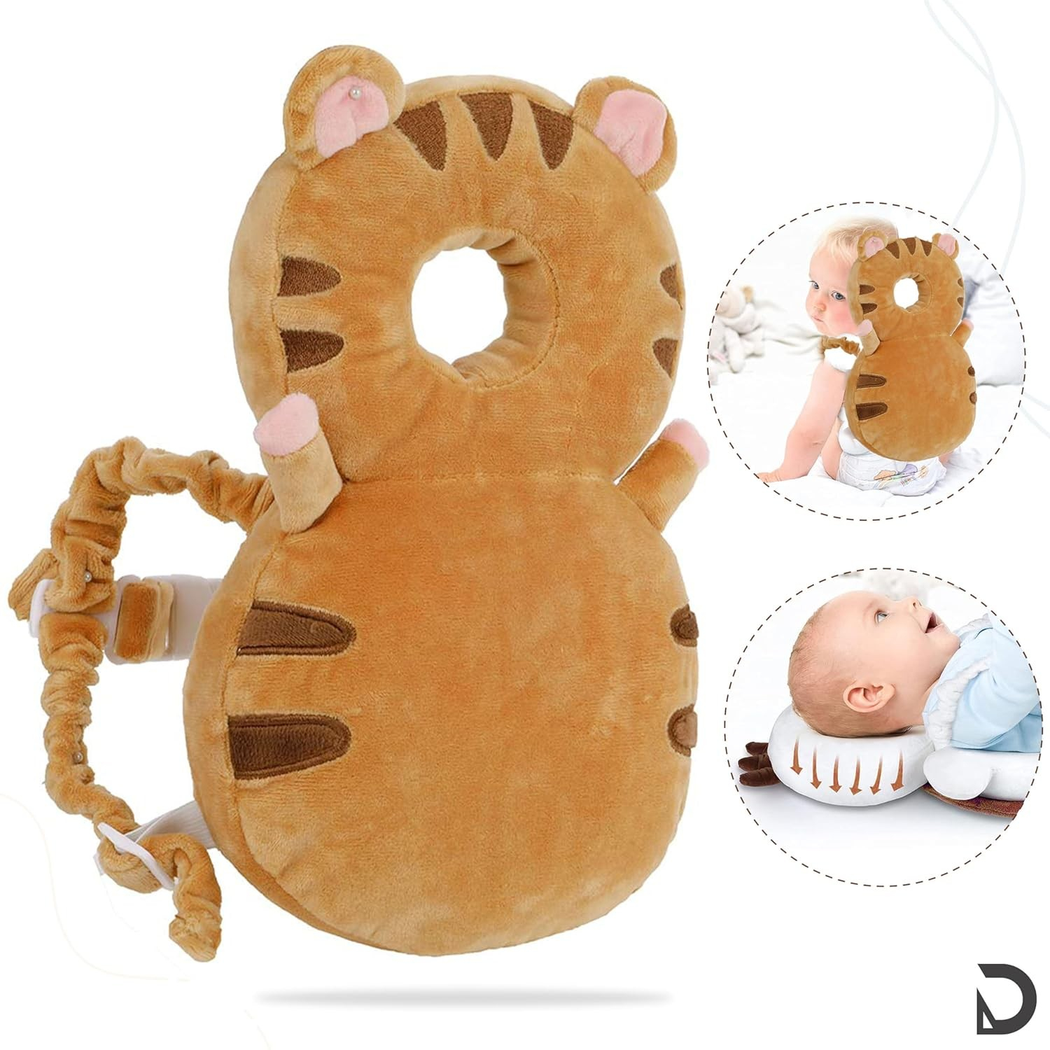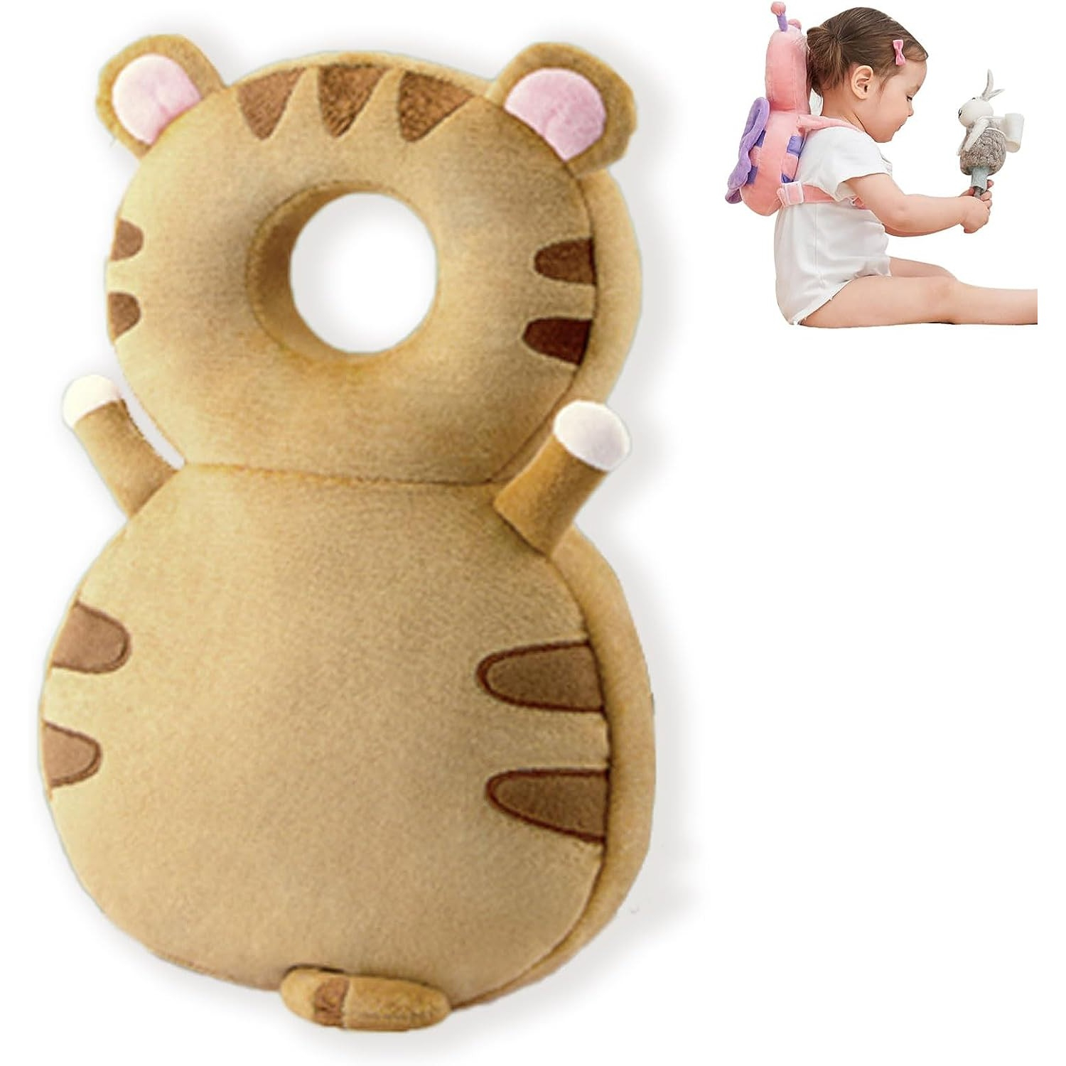 Perna tip Rucsac pentru Protectia Capului, Flippy, Tetiera tip Tigru, pentru Bebelusi, 33x6x19 cm, Maro