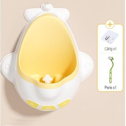 Informatii utile: Functii:Interior detasabil, Tip produs:Pisoar, Pentru:Baieti, Baterii necesare:Nu este cazul, Varsta:0-3 luni, Poveste/Personaj:Alte personaje, Latime:33.5 cm, Inaltime:29 cm, Material:Plastic, Culoare:Galben, Greutate:600 g