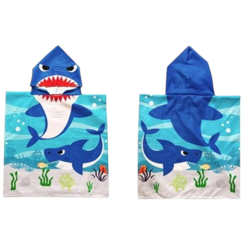 Poncho-ul cu gluga pentru copii, cu dimensiunea 56x60 cm, este perfect pentru plaja, piscina sau utilizare zilnica dupa baie. Designul impresionant cu rechin albastru si fundal marin transforma acest prosop intr-un articol adorat de cei mici, in special de pasionatii de aventura subacvatica.Gluga are un design original cu fata de rechin, adaugand un plus de distractie si creativitate. Fabricat din material moale, placut la atingere si foarte absorbant, poncho-ul asigura uscarea rapida si confortul necesar dupa contactul cu apa. Croiala lejera permite libertate de miscare si este usor de imbracat si purtat.Potrivit pentru copii cu varsta intre 2 si 6 ani, este o alegere ideala pentru vacante, zile de vara la mare sau joaca la piscina. Practic, simpatic si plin de culoare – un accesoriu indispensabil pentru orice copil activ.