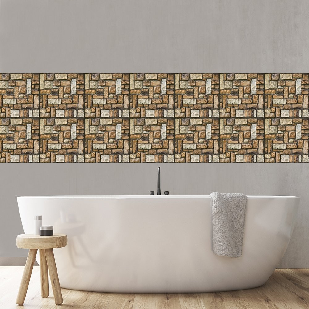 Set 10 Plăci Tapet 3D, Flippy, 30 x 30 cm, din PVC, Tip Piatră, Suprafață acoperită 0.9 mp, Autoadeziv, Maro