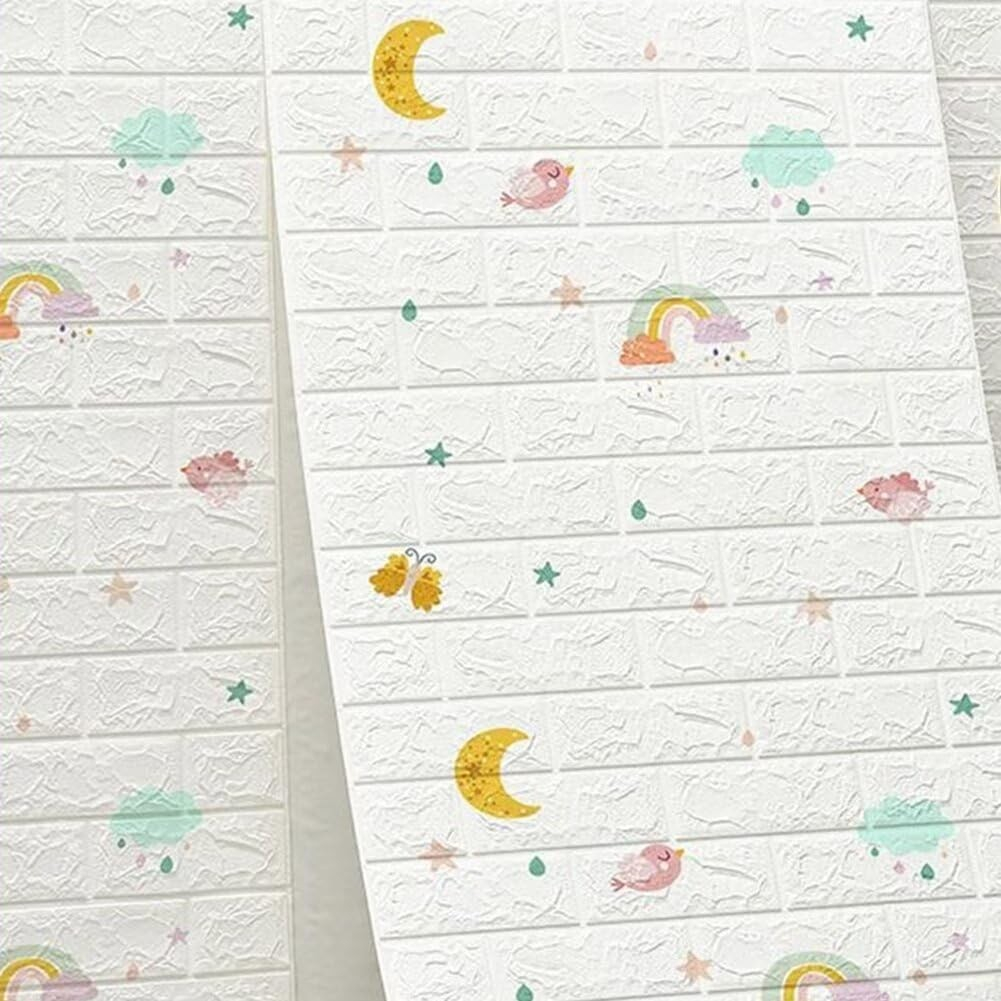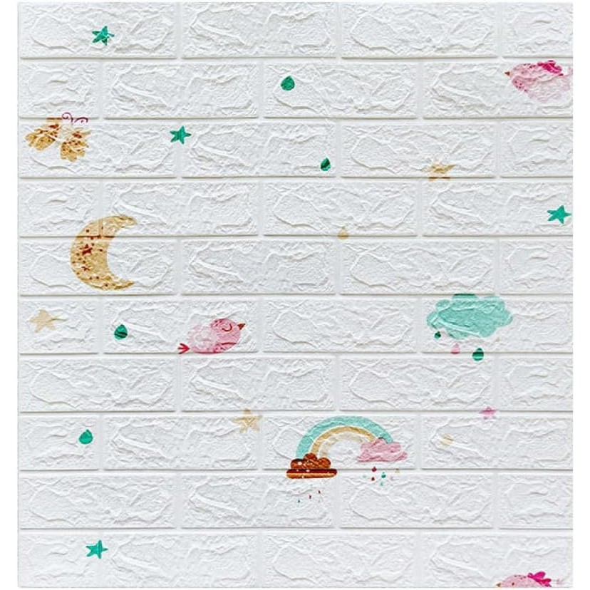 Descriere Produs: Set 10 Placi Tapet 3D - Tip Caramida, Model Curcubeu, Flippy
