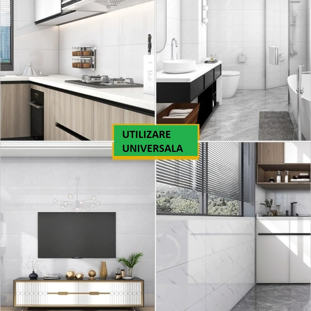 Aceste plăci sunt perfecte pentru renovări rapide și elegante în sufragerie, baie, bucătărie sau alte spații interioare. Rezistente la apă și ușor de întreținut, ele oferă un upgrade estetic rapid și durabil.