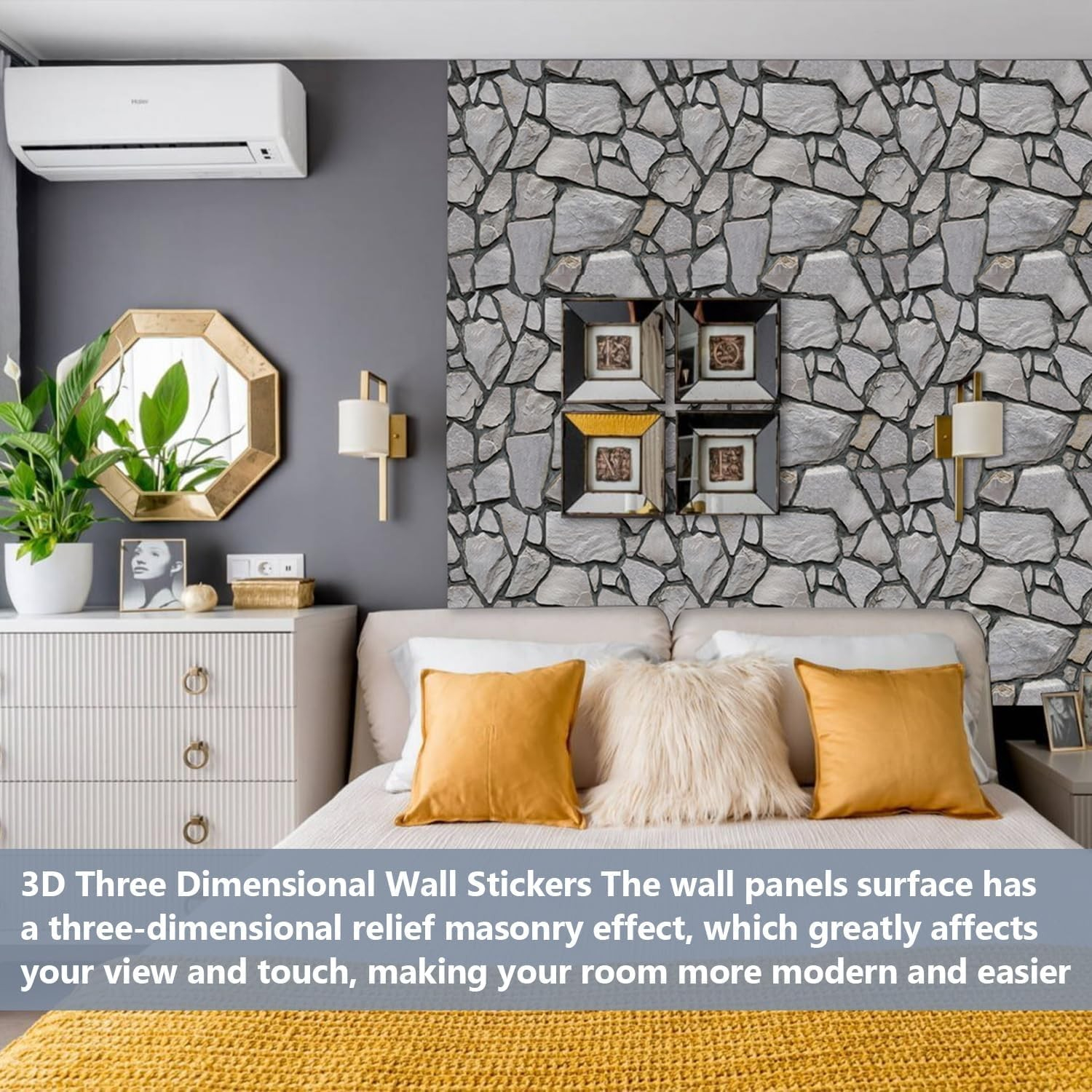 • Design creativ: Modelul de pietre aduce o textură autentică și un aspect natural, ideal pentru orice stil de decor.