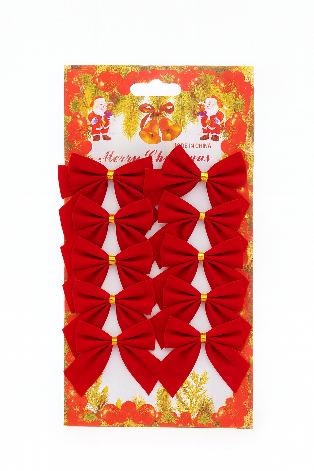 Adauga un strop de magie bradului de Craciun cu acest set de 12 fundite rosii clasice, ideale pentru decorarea bradului, coronitelor, ghirlandelor sau cadourilor. Funditele sunt realizate din material textil catifelat, au forma perfecta si sunt prevazute cu sistem de prindere pentru montare rapida.