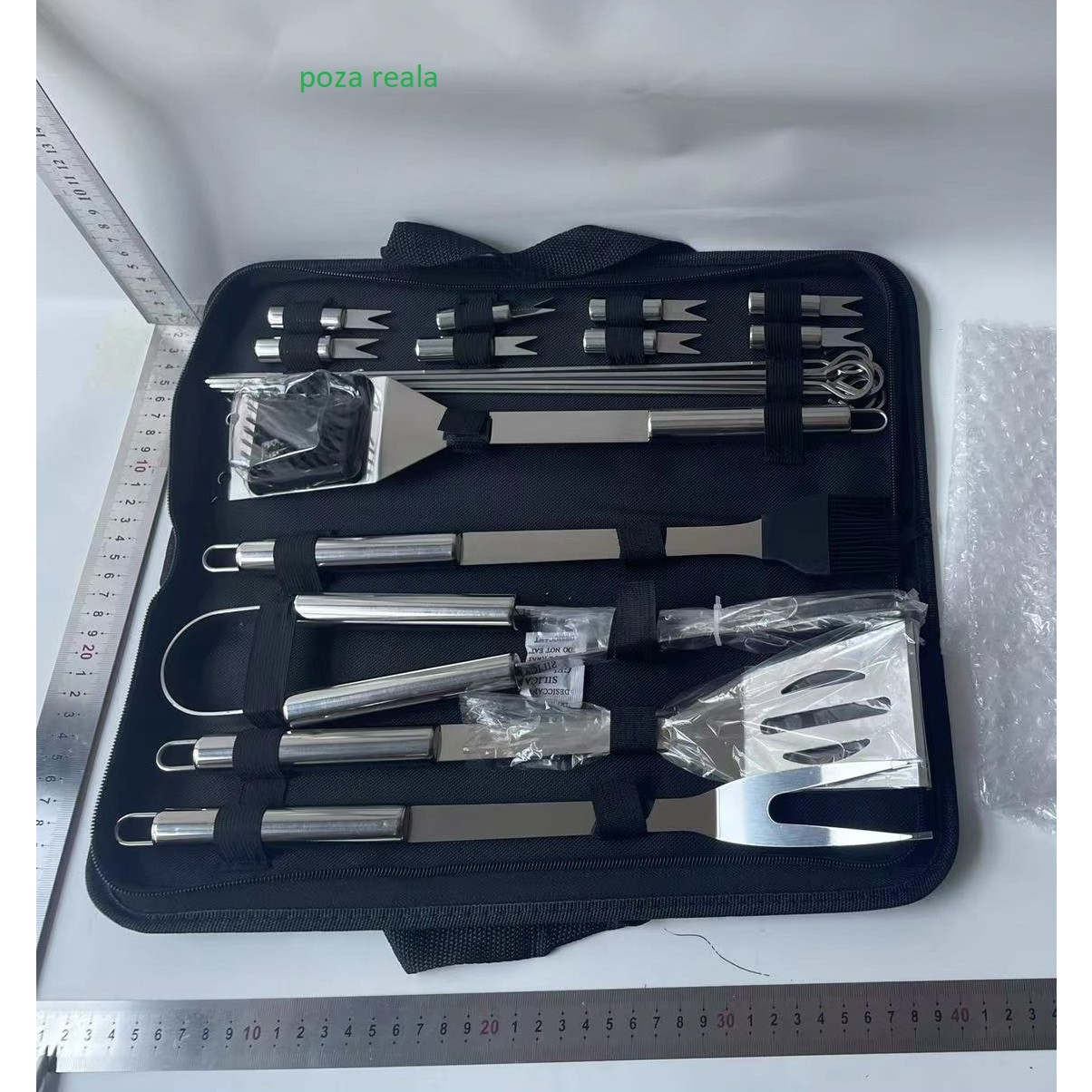 Set 20 Ustensile pentru Grătar, Flippy, din Oțel Inoxidabil, Geantă Oxford, Argintiu