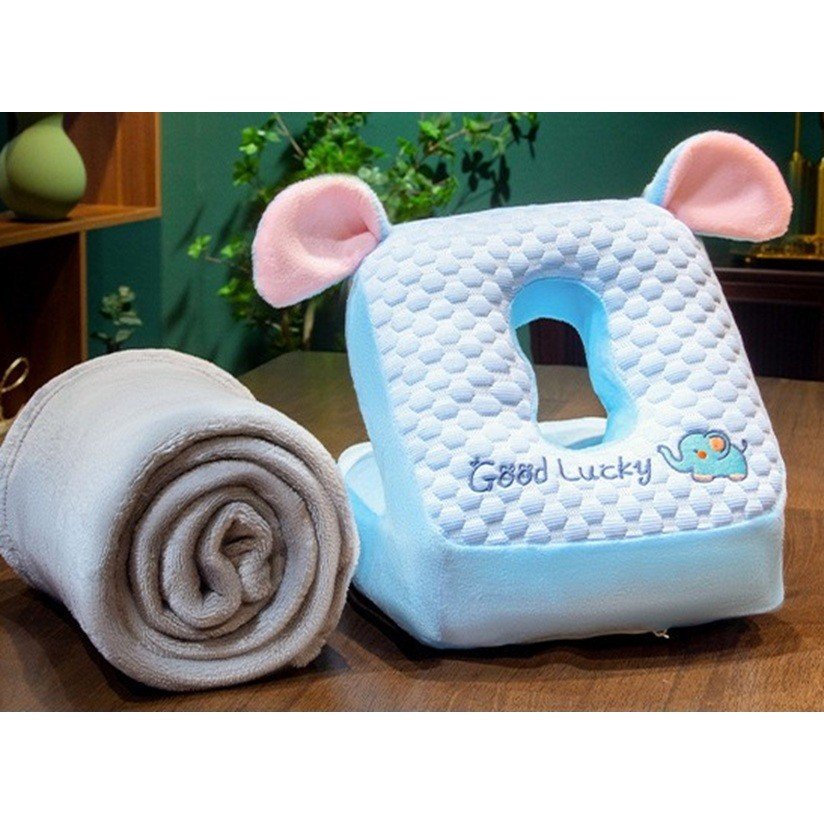 Informatii utile: Instructiuni utilizare:Compatibil masina spalat rufe, Imprimeu:Cu model, Numar piese/set:2, Pentru:Adulti Copii, Caracteristici cheie:Husa detasabila, Material umplutura:Bumbac, Tema:Animatie, Dimensiune (cm):30 x 35 x 30 cm, Material:Plus Bumbac, Tip produs:Fata de perna, Utilizare:Exterior Interior, Greutate:680 g, Continut pachet:1 x patura + perna elefant, Culoare:Albastru, Tip inchidere:Fermoar, Forma:Asimetric