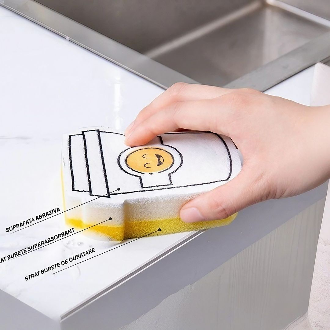 Adaugă un strop de haz în rutina zilnică de curățenie cu acest set de 4 bureți de vase Funny Model 1. Fiecare burete este decorat cu un design amuzant care transformă spălatul vaselor într-o activitate mai plăcută și mai puțin monotonă. Potriviți atât pentru uz casnic, cât și ca idee de cadou haios pentru prieteni sau colegi.