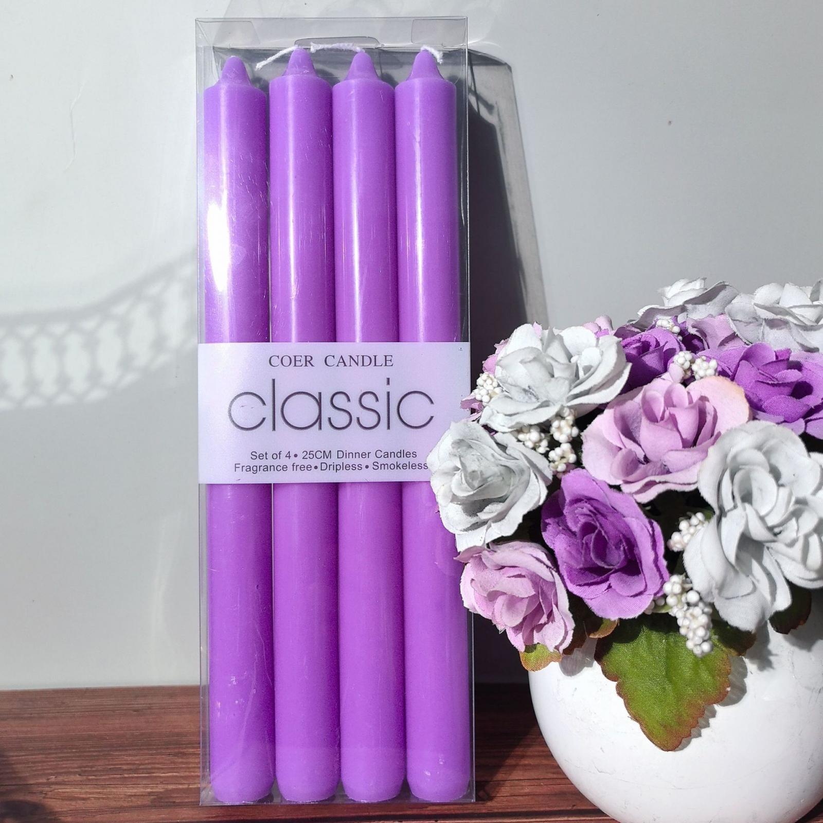 Informatii utile: Inaltime:25 cm, Greutate:80 g, Cantitate pachet:4, Tip produs:Lumanare, Material:Parafina, Parfum:Fara parfum, Lungime:2.2 cm, Diametru:2.2 cm, Sarbatoare:Craciun Paste Ziua indragostitilor, Culoare:Mov