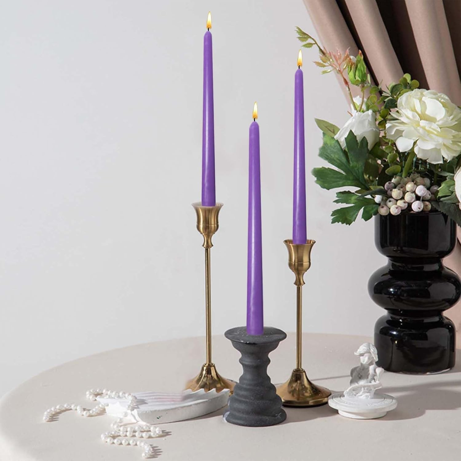 Aceste lumânări elegante sunt ideale pentru cine romantice, decorarea mesei sau evenimente speciale. Cu un design simplu și sofisticat, oferă o lumină caldă și plăcută, fără miros, fum sau picurare.