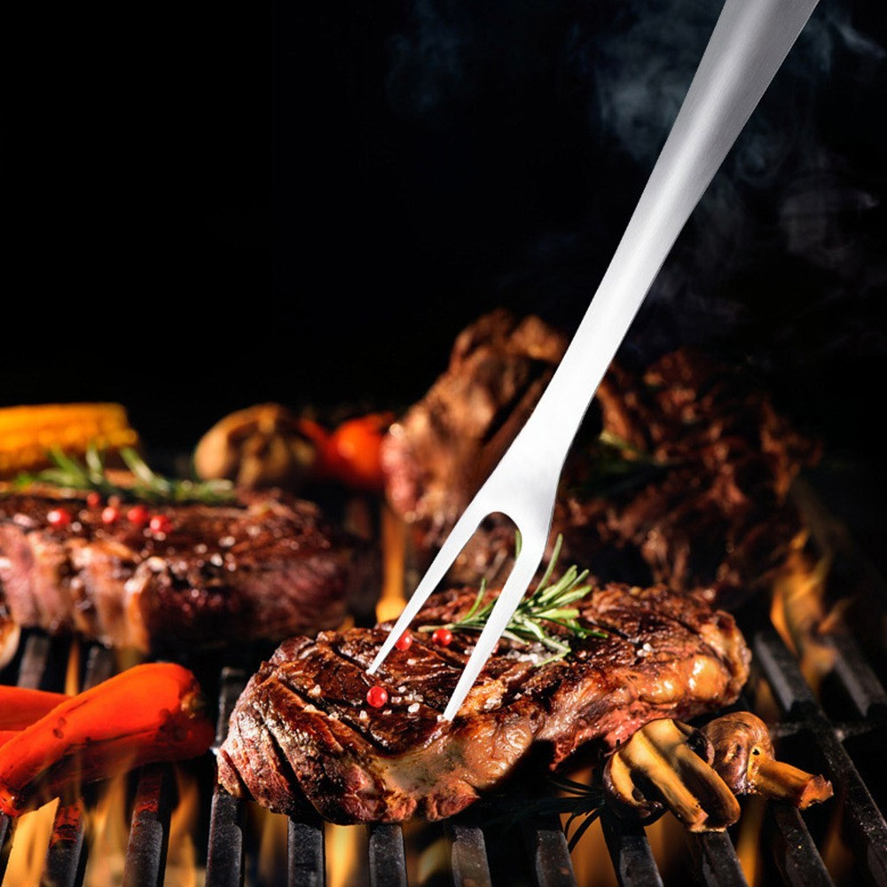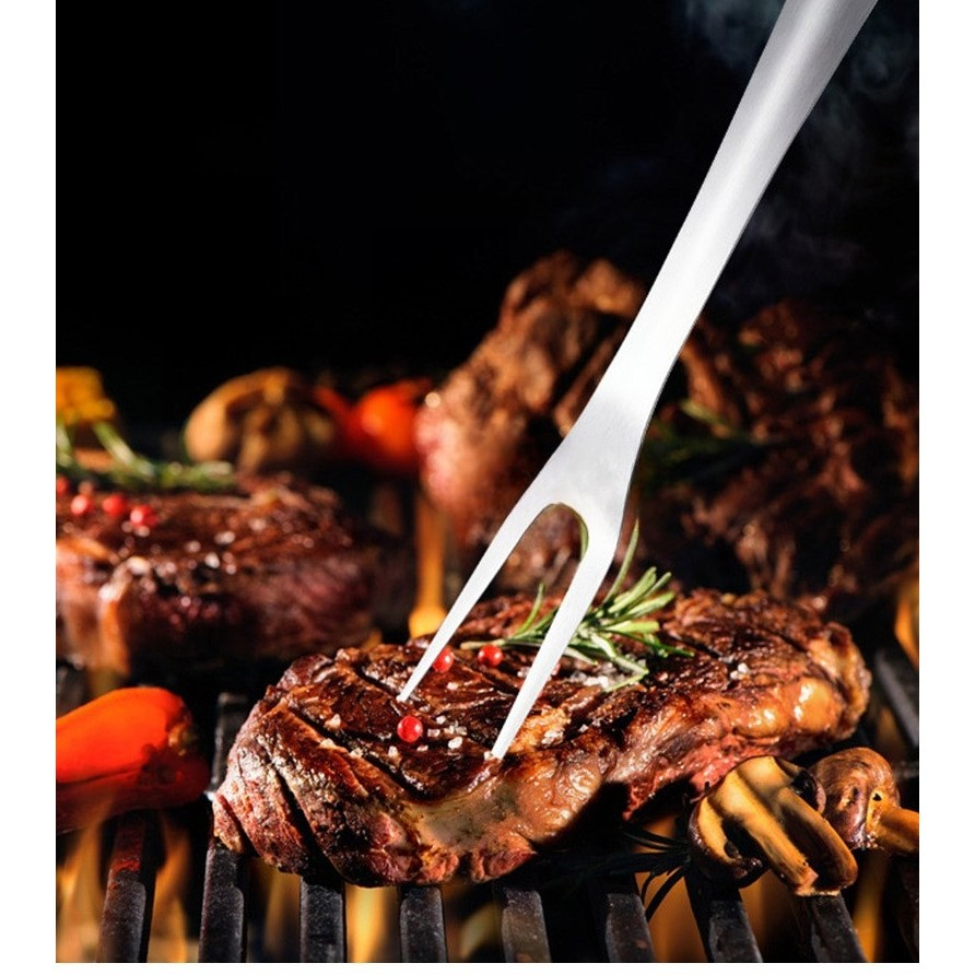 Toate uneltele sunt confortabile lungi pentru a fi folosite în siguranță pe grătare la o distanță suficientă de foc.