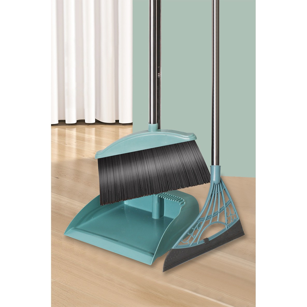 Set matura, faras cu coada si matura silicon, Flippy, Pentru uz casnic, Plastic/Otel, Albastru deschis, 90 x 72 x 100 cm