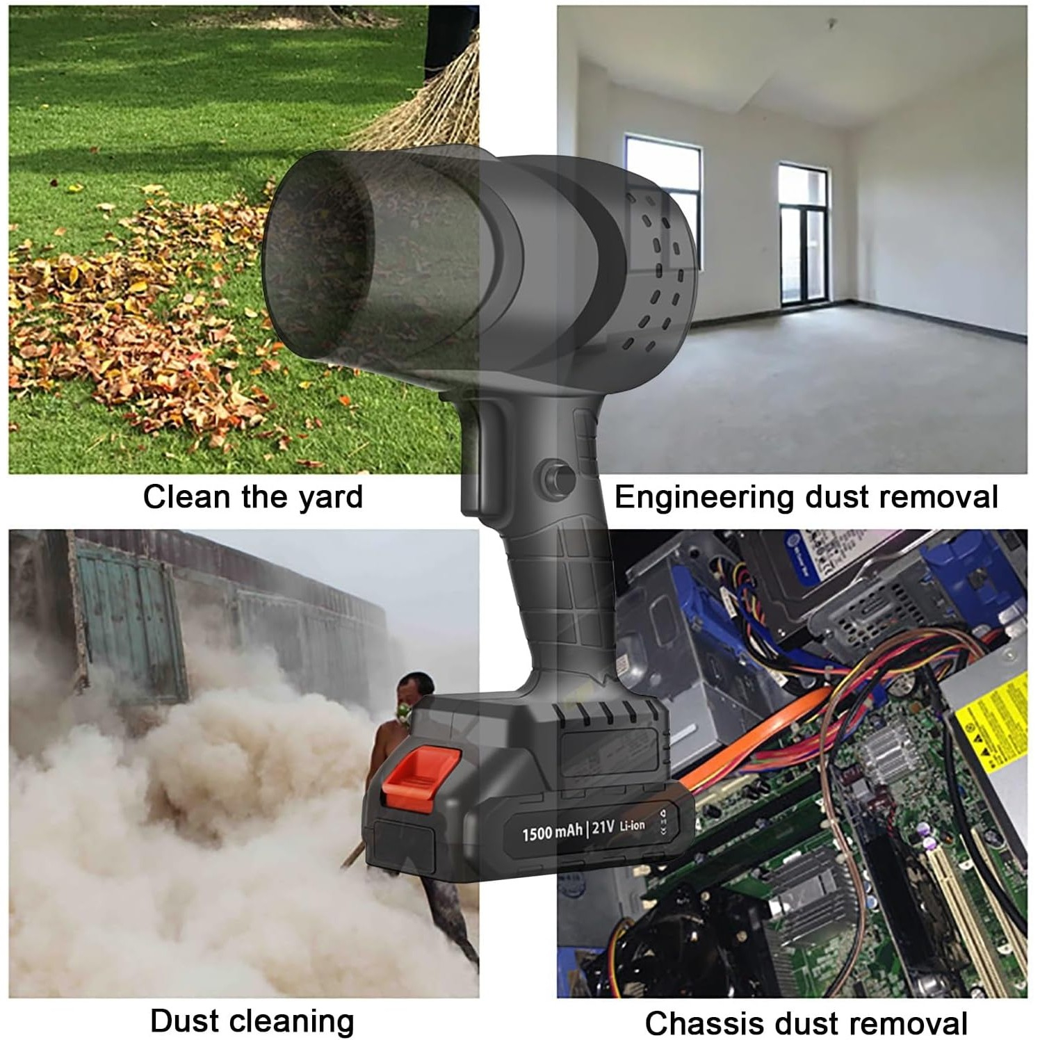 Suflanta de Aer Multifunctionala Portabila, , Incarcare Auto, pentru Gratar, Masina, Indepartare Frunze si Praf, 1500 mAh, Viteta de Rotatie 25000 RPM, 2 Baterii de Li si Incarcator, Negru