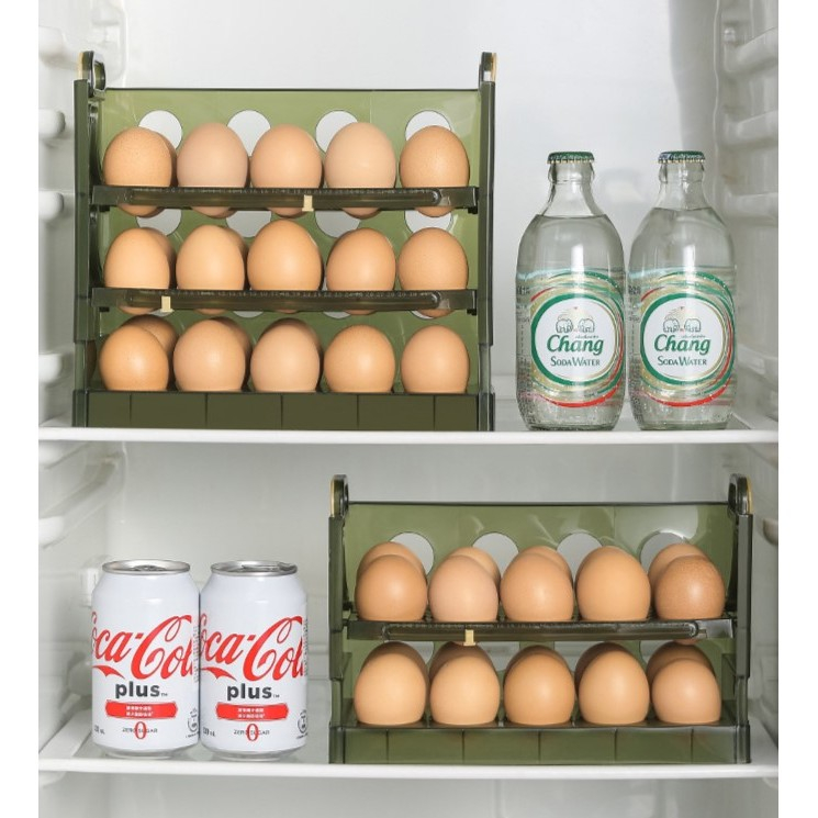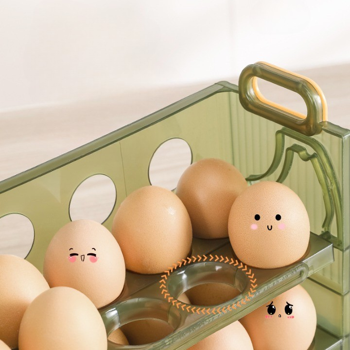 Descriere produs: Suport organizator pentru ouă Flippy pentru frigider - Verde transparent, capacitate 30 ouă, trei straturi