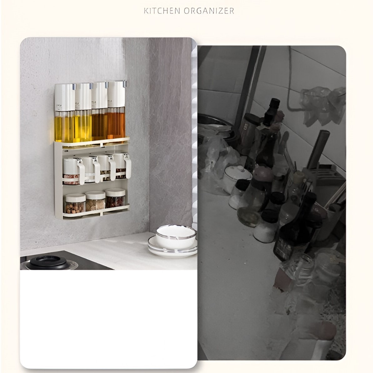 Păstrează-ți condimentele perfect organizate cu organizatorul nostru inovator de condimente. Acest set elegant și funcțional este un must-have pentru fiecare pasionat de gastronomie!