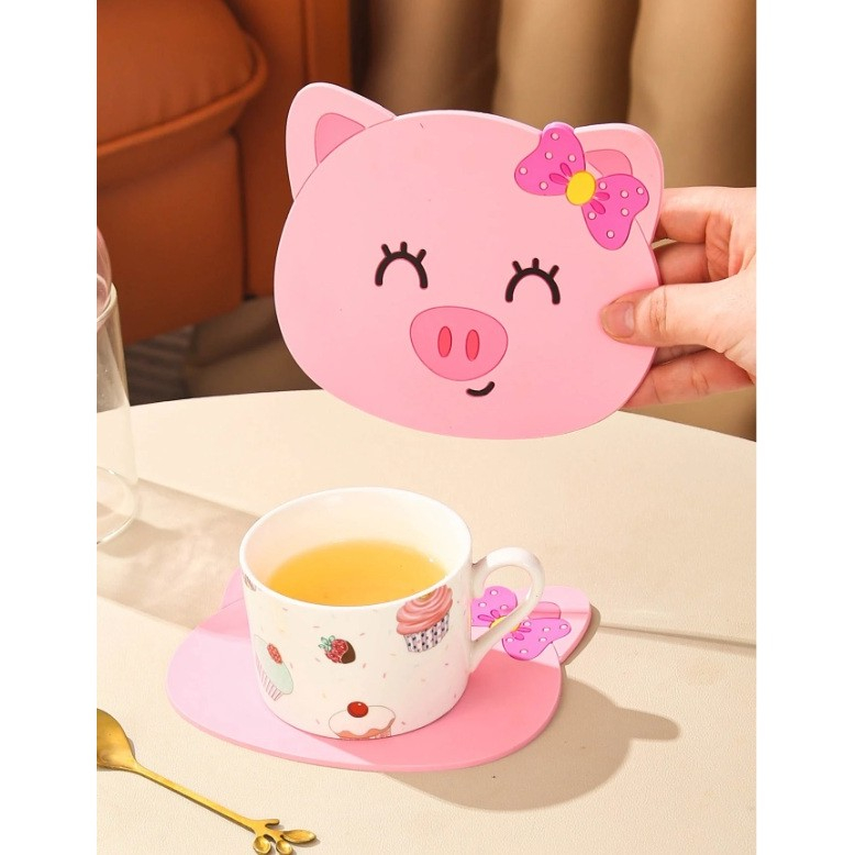 Informatii utile: Tip produs:Suport pahare, Tip:De masa, Functii:Protectie mobilier, Inaltime:0.3 cm, Continut pachet:Suport pentru Pahar, , Model Urs Purcelus, din PVC, 15.5x15.5 cm, Rezistent la Caldura, Roz, Latime:15.5 cm, Material:PVC, Culoare:Roz, Lungime:15.5 cm, Greutate:60 g, Forma:Asimetric
