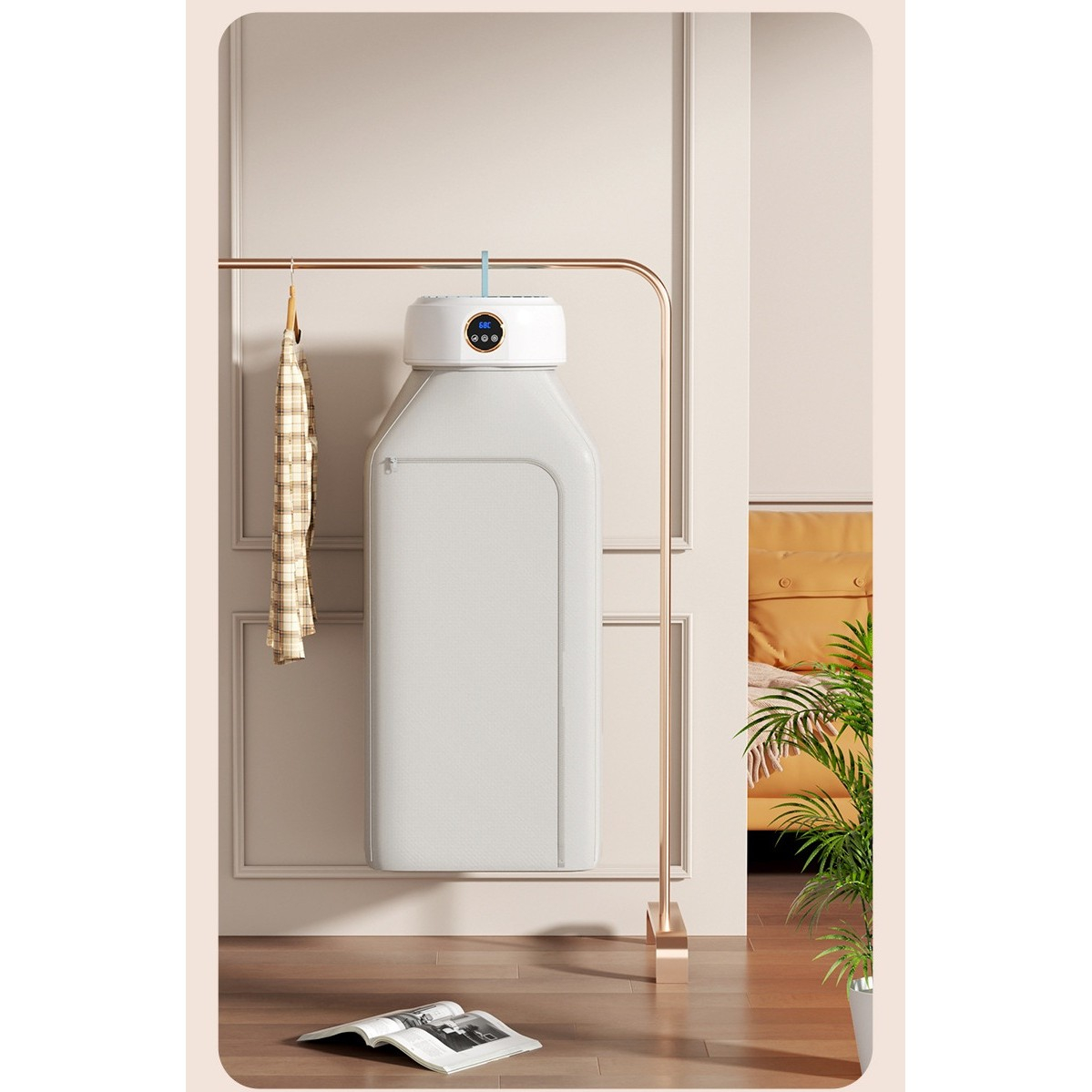 Uscătorul de rufe Flippy este un dispozitiv compact și eficient, ideal pentru uscarea rapidă și silențioasă a hainelor acasă sau în călătorii. Designul portabil și funcțiile inteligente îl fac potrivit pentru orice spațiu.