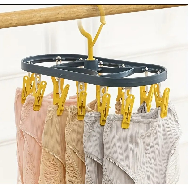 Uscătorul de rufe suspendat Flippy cu 12 cârlige reprezintă o soluție versatilă și practică pentru a usca și organiza hainele în mod eficient. Cu o construcție solidă din material plastic, funcții inteligente precum rotația de 360 de grade și protecție împotriva vântului, acest uscător face munca de îngrijire a hainelor mai ușoară și mai ordonată.