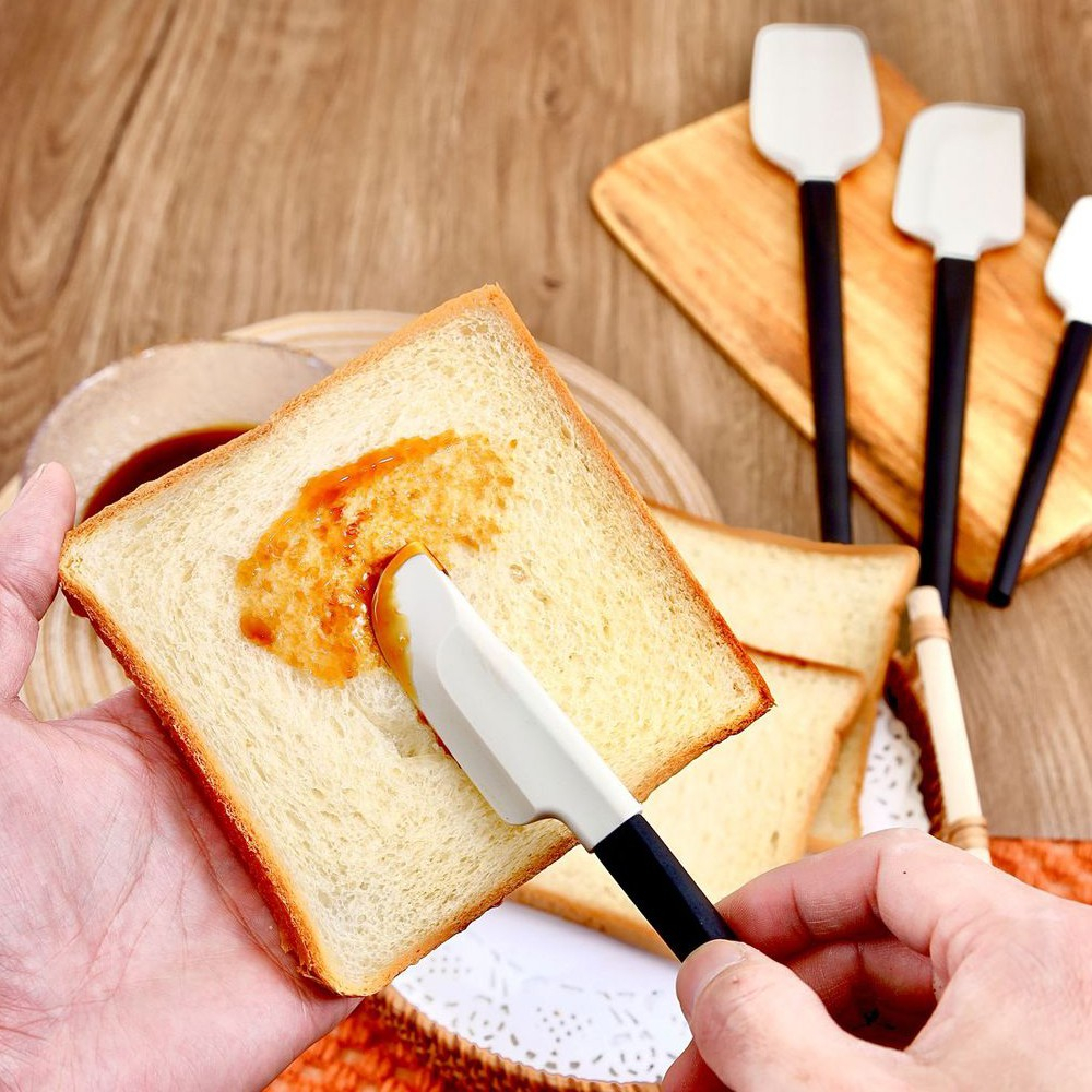 Ustensile de Bucatarie, Flippy, Set din 4 bucati, din Silicon si Lemn, Spatule de Diferite Dimensiuni, Termo rezistente, Antiaderente, Instrument de Amestecat in Bucatarie