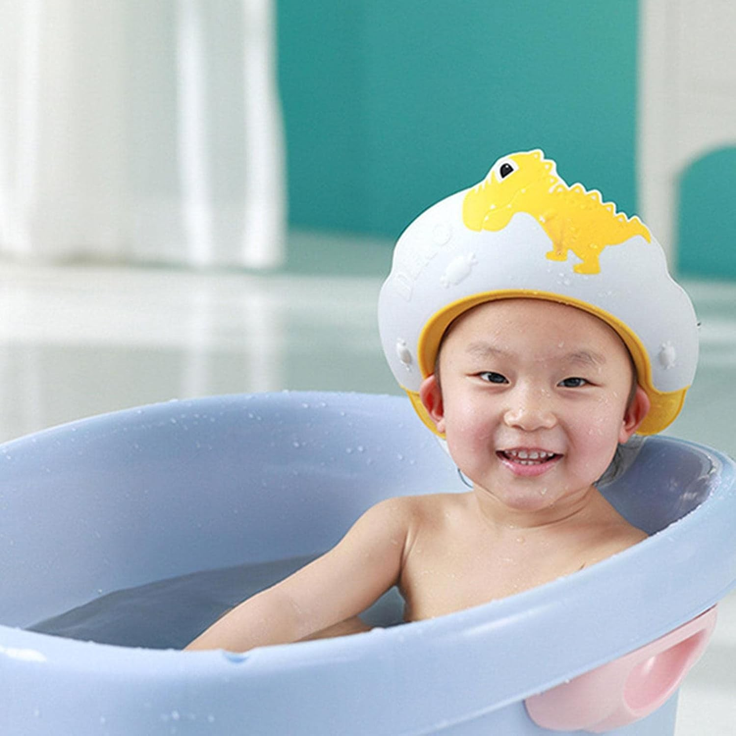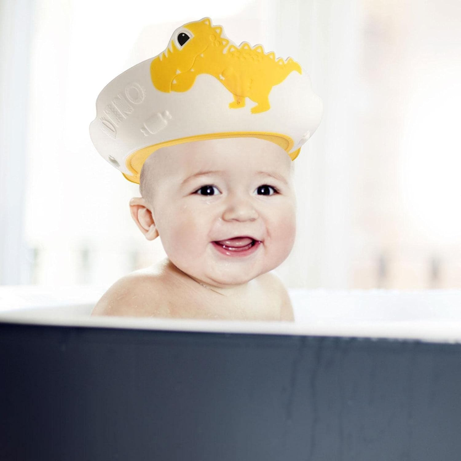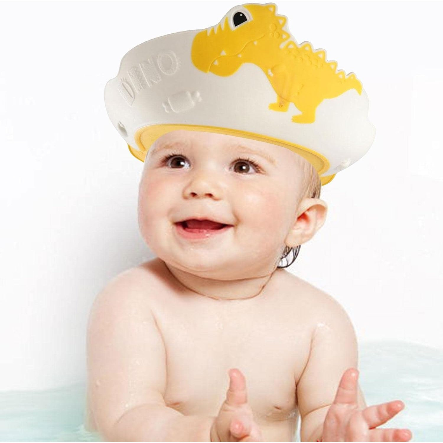 Viziera de Protectie Baie Pentru Copii, Fippy, Model Dinozaur, Dimensiune ajustabila, Durabil, Usor de curatat, Impotriva Samponului, pentru Ochi si Urechi, TPE+PP, 22x21 cm, Galben