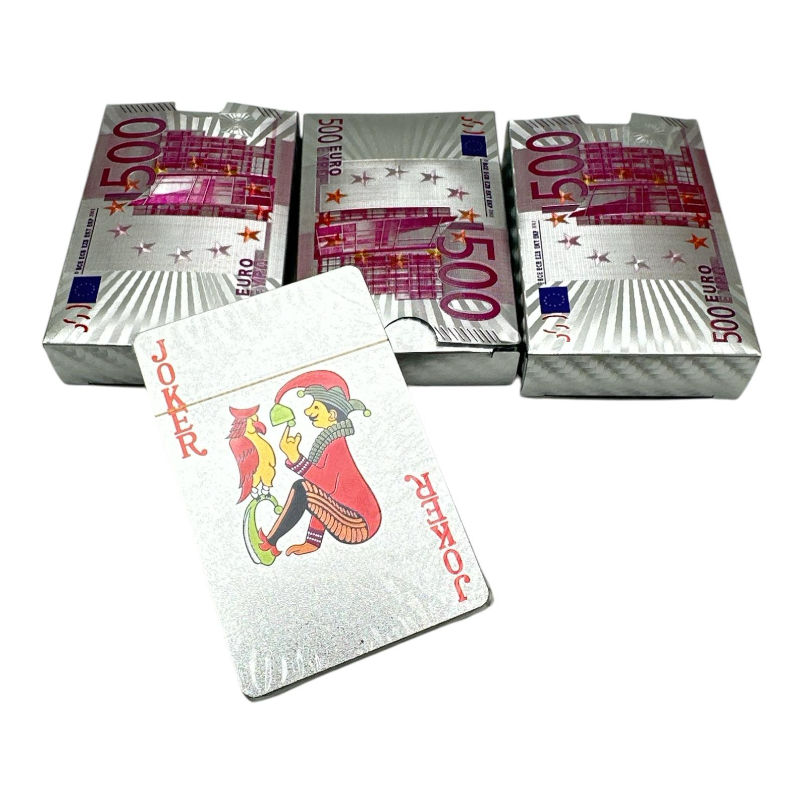 Descoperă un set spectaculos de cărți de joc argintii Euro, cu un design modern, strălucitor, inspirat de bancnotele europene. Realizate din materiale rezistente la apă și uzură, aceste cărți sunt perfecte pentru jocuri de societate, seri de poker sau colecții de lux.Fiecare carte are un finisaj metalizat argintiu care atrage privirile și oferă un aspect sofisticat. Ideale pentru cadouri, colecționari sau pasionații de jocuri care doresc un plus de stil și originalitate în fiecare partidă