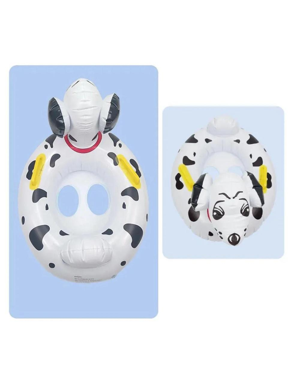 Colac de inot gonflabil pentru copii, cu design jucaus in forma de catel dalmatian alb cu pete negre, cap 3D si urechi simpatice. Dotat cu doua manere laterale galbene pentru prindere sigura si orificii duble pentru picioare, acest colac este conceput pentru a oferi stabilitate, siguranta si distractie maxima celor mici in apa.Realizat din PVC de calitate superioara, material moale, durabil si netoxic, colacul este prietenos cu pielea sensibila a copiilor si usor de curatat. Capul 3D al catelului si imprimeul cu pete fac din acest colac o alegere adorabila pentru piscina, plaja sau vacantele de vara.Este usor de umflat si transportat, se pliaza compact si ocupa putin spatiu in bagaj – ideal pentru excursii la strand sau concedii in familie.Recomandat pentru copii intre 1 si 4 ani, cu supravegherea unui adult.