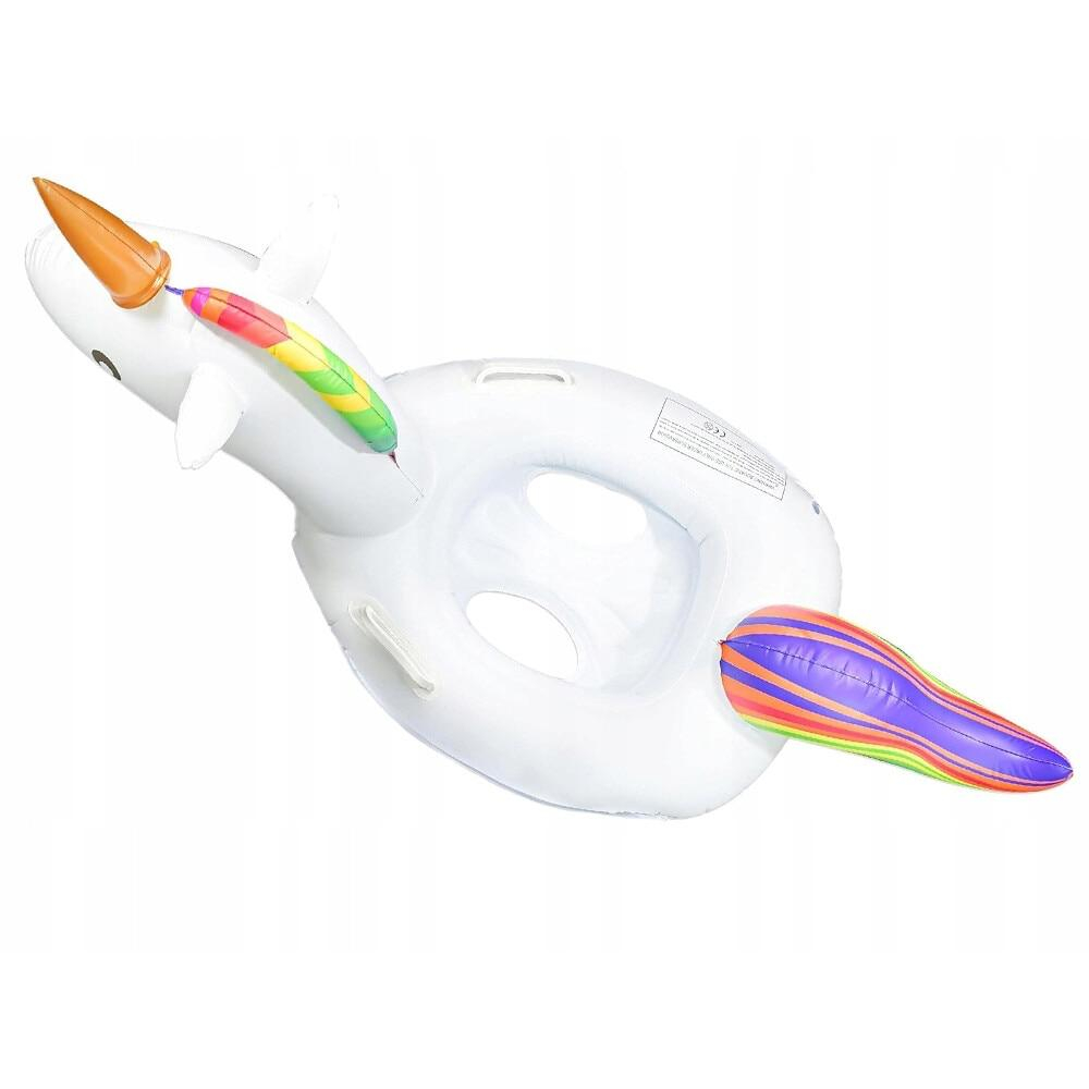 Colac de inot gonflabil cu design spectaculos in forma de unicorn alb, prevazut cu cap 3D, corn auriu stralucitor, coama si coada curcubeu, ideal pentru atat copii cat si adulti. Acest colac transforma fiecare zi de vara la piscina, strand sau mare intr-o experienta distractiva, relaxanta si instagramabila.Modelul rotund ofera confort si stabilitate, fiind prevazut cu manere laterale pentru o prindere sigura si echilibru sporit in apa. Fabricat din PVC rezistent si netoxic, materialul este moale si sigur pentru piele, usor de curatat si ideal pentru utilizare frecventa.Colacul se umfla si se dezumfla rapid, este compact pentru transport si usor de depozitat – perfect pentru vacante sau escapade de weekend la apa.