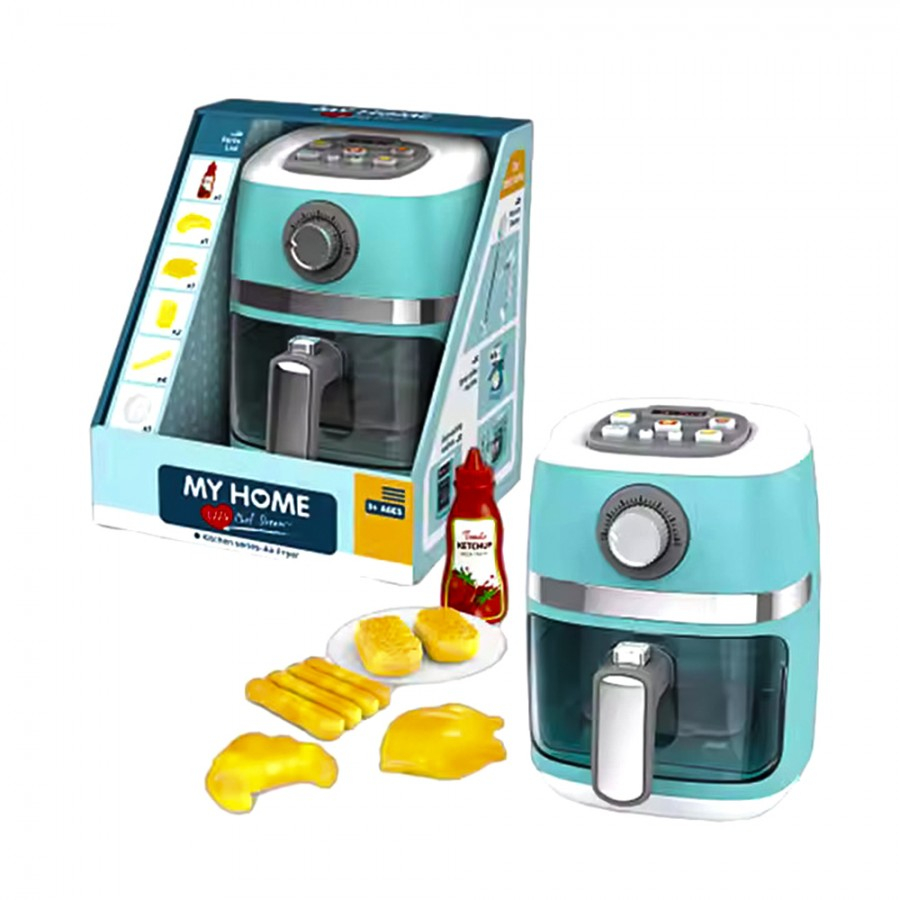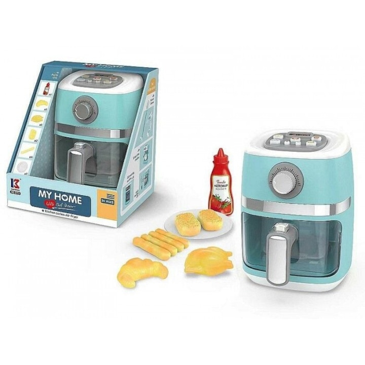 Electrocasnic de jucărie cu sunete/lumini, coș detașabil și set de „mâncare” pentru joacă de rol în bucătărie.