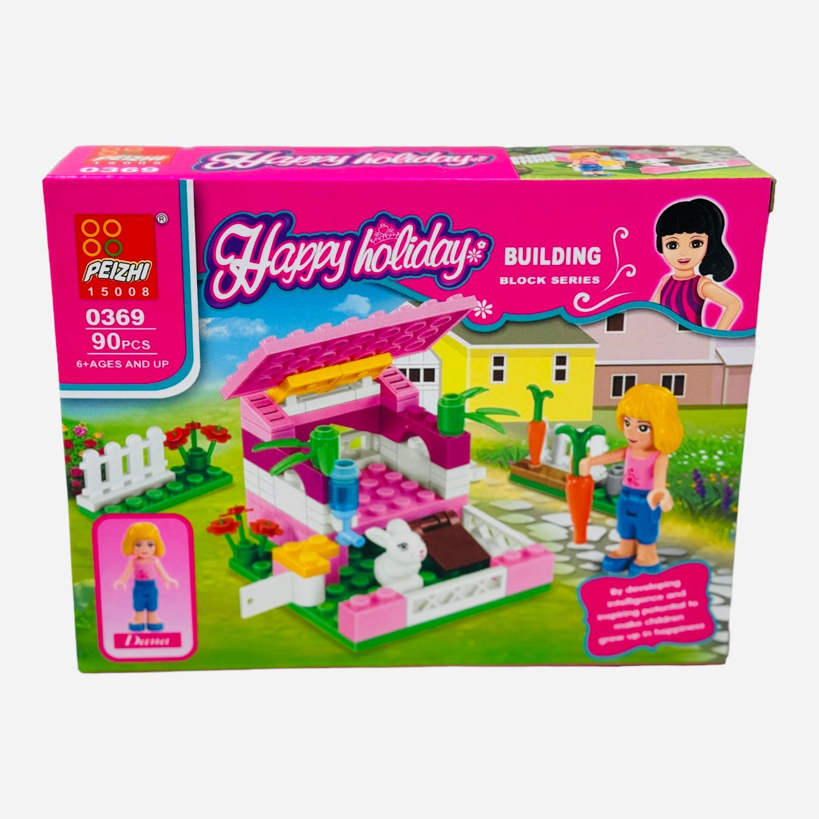 Joc de Constructie pentru fetite, Happy Holiday, Iepurasi, 90pcs, 18.5×14cm, +6ani,