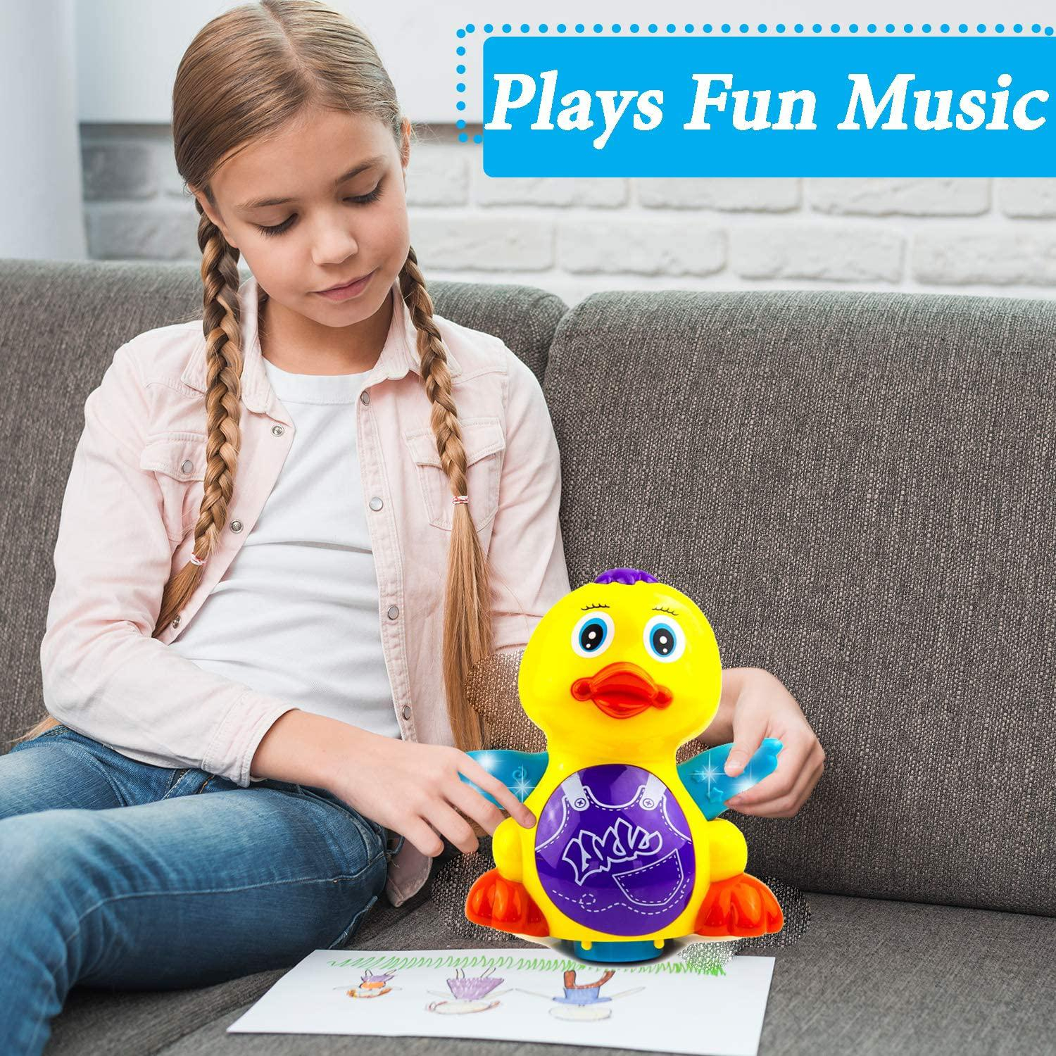 Jucărie interactiva Ratusca dragalasa cu sunete si lumini, Duck Amusing, 17×11×11cm, +3ani , .O jucărie deosebit de atractiva pentru bebeluși SI copii mici, datorita sunetelor pe care le scoate si miscarilor pe care le executa.Functioneaza cu 3 baterii de 1.5V tip AA (nu sunt incluse).