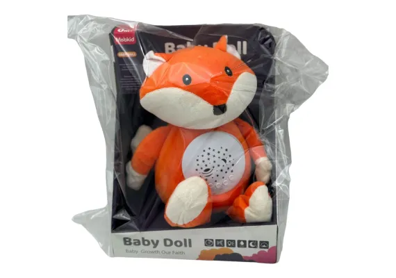 Jucarie din plus pentru bebelusi, Vulpita Adorabila, cu proiectie forme luminoase si sunete, 33×25cm,