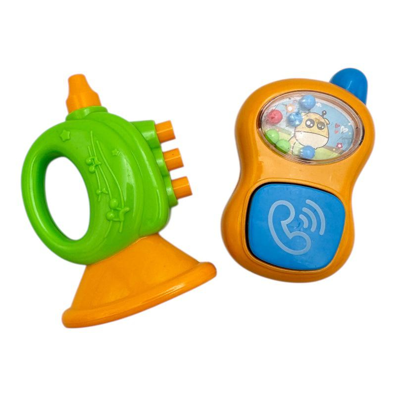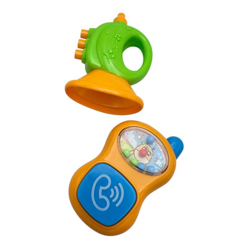 Descopera o jucarie zornaitoare amuzanta si educativa pentru bebelusi, in forma de trompeta si telefon, creata special pentru a stimula curiozitatea si dezvoltarea timpurie a celor mici. Aceasta jucarie colorata atrage atentia bebelusului prin forme prietenoase si sunete vesele care incurajeaza explorarea si jocul activ. Este ideala pentru dezvoltarea simtului auditiv, coordonarii mana-ochi si motricitatii fine. Fabricata din materiale sigure, durabile si non-toxice, este potrivita pentru bebelusi de peste 3 luni. Un cadou minunat si util pentru orice parinte care isi doreste o jucarie interactiva si sigura pentru copilul sau.