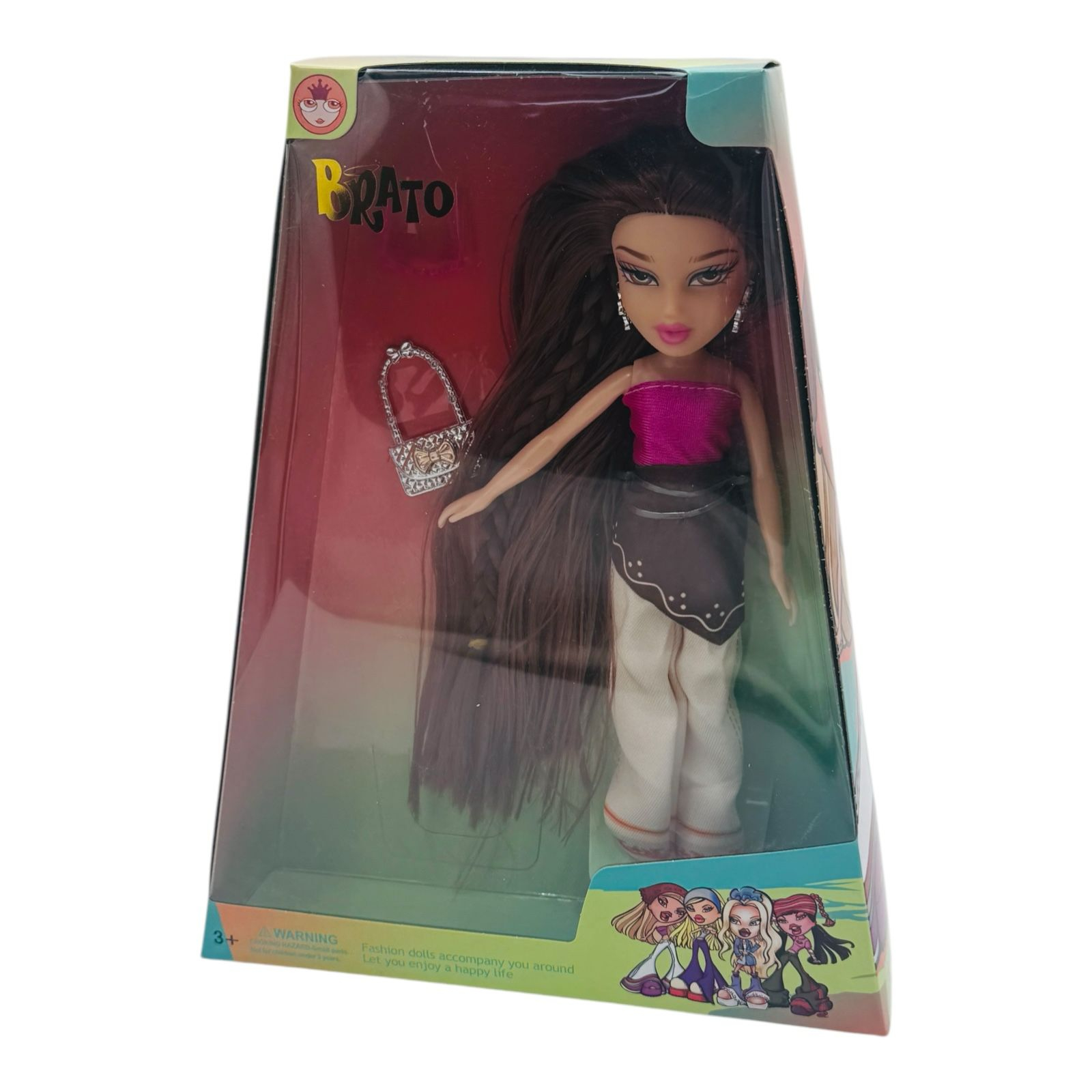 Eleganta si stilul boem se intalnesc in papusa Fashion Diva Bohemian Chic! Imbracata intr-o tinuta lejera cu pantaloni evazati decorati si top pufos, aceasta papusa surprinde prin look-ul sau natural si sofisticat. Parul lung, impletit elegant, ofera posibilitati variate de coafare, iar poseta si accesoriile completeaza perfect stilul boho-chic. Un cadou ideal pentru iubitorii de moda si colectionarii de papusi cu personalitate!