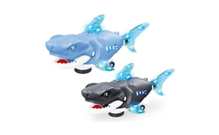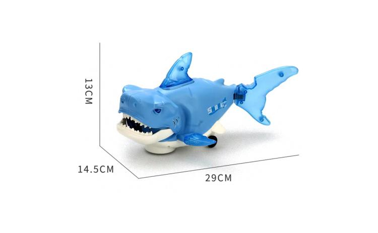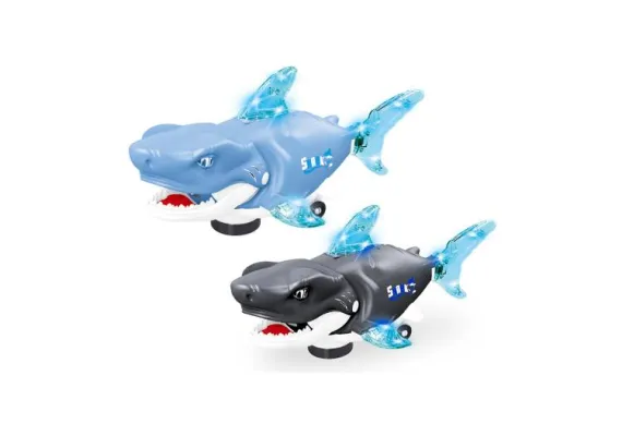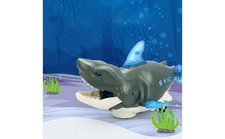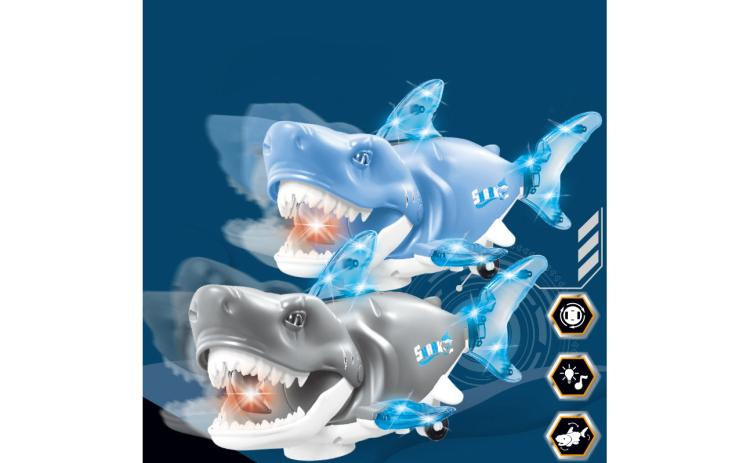 Stimuleaza imaginatia copilului tau cu aceasta jucarie interactiva in forma de rechin, echipata cu lumini LED RGB si functia de rotire automata a capului stanga-dreapta. Fabricata din material ABS non-toxic, jucaria este sigura pentru cei mici si rezistenta in timp. Culoarea albastra si efectele luminoase atractive capteaza atentia si incurajeaza jocul activ. Functioneaza cu 3 baterii tip AA (neincluse), iar dimensiunile produsului sunt de aproximativ (29x13x14.5cm). Ideala pentru joaca de interior si un cadou excelent pentru copii pasionati de animale marine sau jucarii interactive.