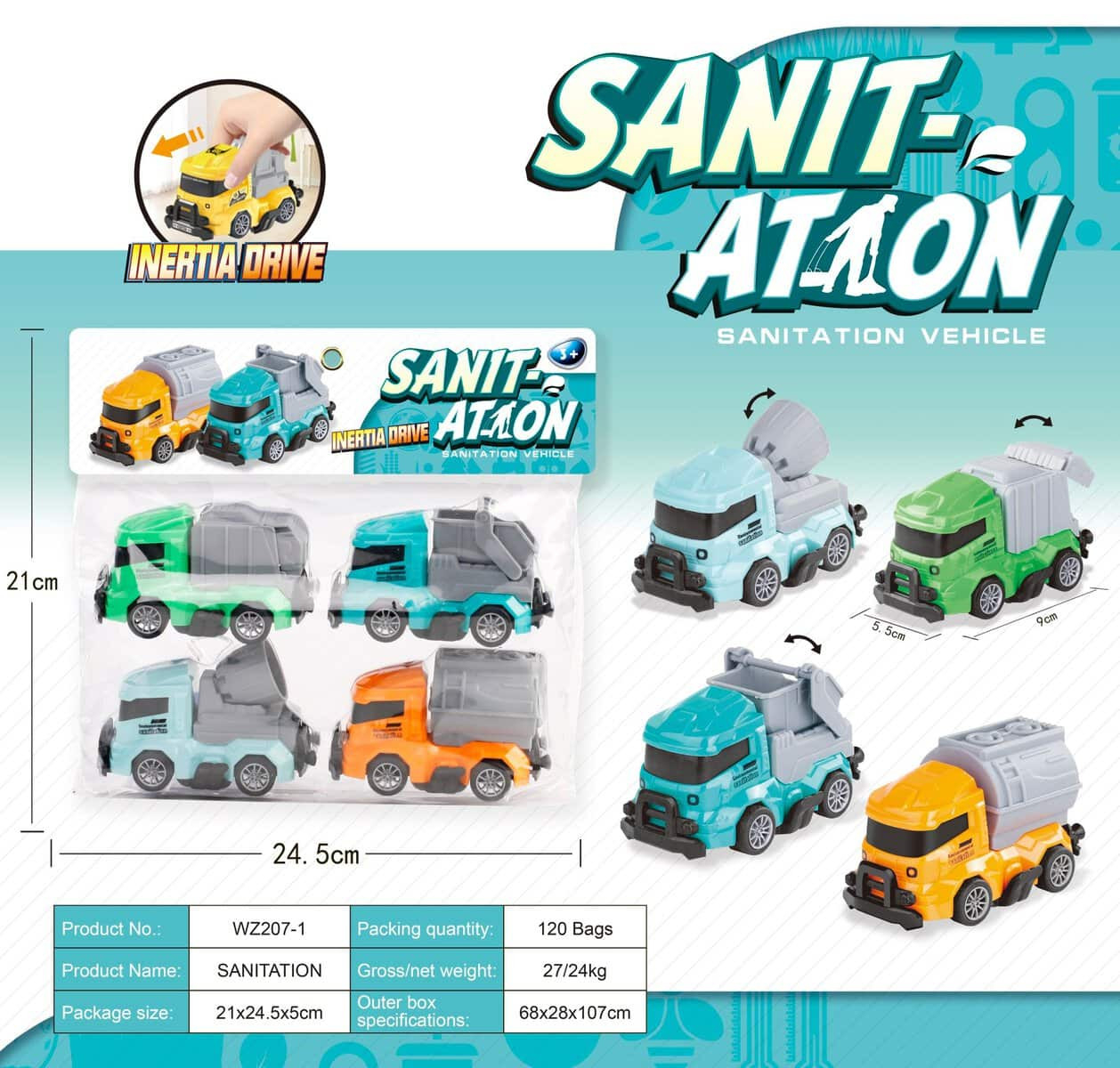 Set 4 masini de gunoi, Sanitation, 24.5×20×5cm, +3ani,