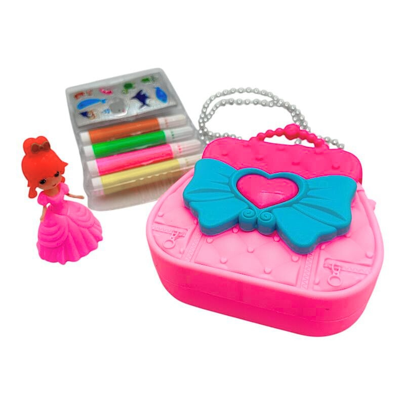 Surprinde orice fetita cu acest set adorabil care include o poseta eleganta, o papusa draguta si o plasa de colorat, toate ambalate intr-un format compact de 30x21 cm. Setul incurajeaza jocul creativ, imaginatia si activitatile artistice, fiind perfect pentru ore intregi de distractie. Poseta poate fi folosita si separat, papusa este ideala pentru jocuri de rol, iar plasa de colorat dezvolta indemanarea si expresivitatea copiilor. Un cadou complet si original, ideal pentru zile de nastere, sarbatori sau joaca de zi cu zi.