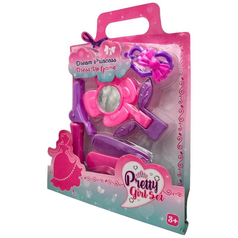 Setul Pretty Girl este o jucarie creativa pentru fetite care adora jocurile de rol si ingrijirea personalaInclude oglinda in forma de fundita fion perie pieptene si alte accesorii decorative toate in nuante de roz si mov.Ambalajul tip gentuta permite transportul usor fiind perfect pentru joaca acasa la gradinita sau in vizitaJucaria incurajeaza imaginatia dexteritatea si jocul independentRecomandat pentru copii peste 3 ani este un cadou ideal pentru micile printese pasionate de frumusete si moda.