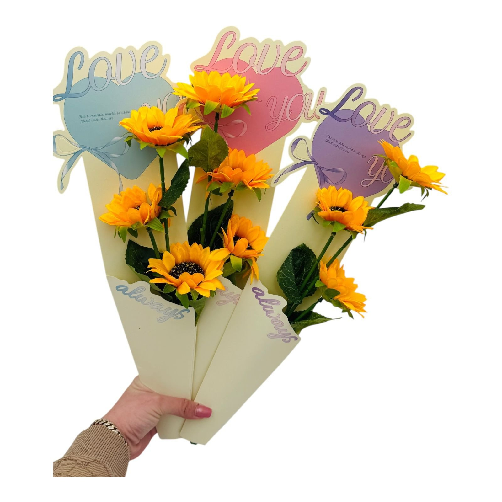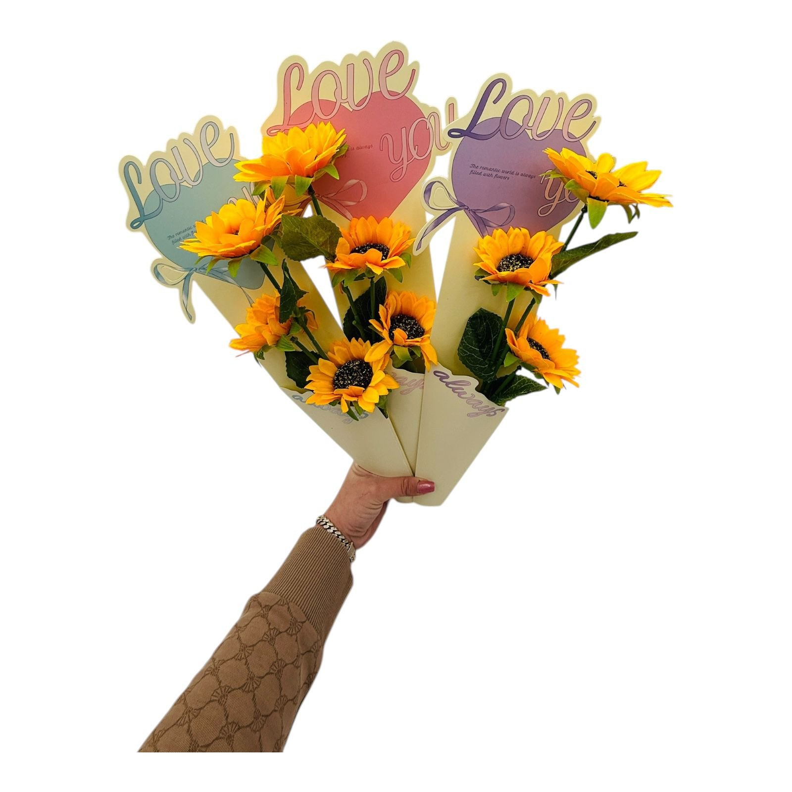 Aranjament Deosebit cu Floarea-Soarelui – 44 cm, Disponibil Adăugați o notă de soare și bucurie în orice spațiu cu acest aranjament floral realizat cu flori artificiale de floarea-soarelui, delicate și realiste. Cu o lungime de 44 cm, acest aranjament este ideal pentru decorarea interioarelor, oferirea cadourilor sau crearea unui ambient plăcut la evenimente speciale.Designul include un ambalaj elegant, perfect pentru a transmite un mesaj de dragoste, apreciere sau recunoștință. Acest produs este disponibil , fiind o opțiune excelentă pentru magazinele de cadouri sau pentru organizatorii de evenimente.Un aranjament care aduce veselie și stil în orice context!