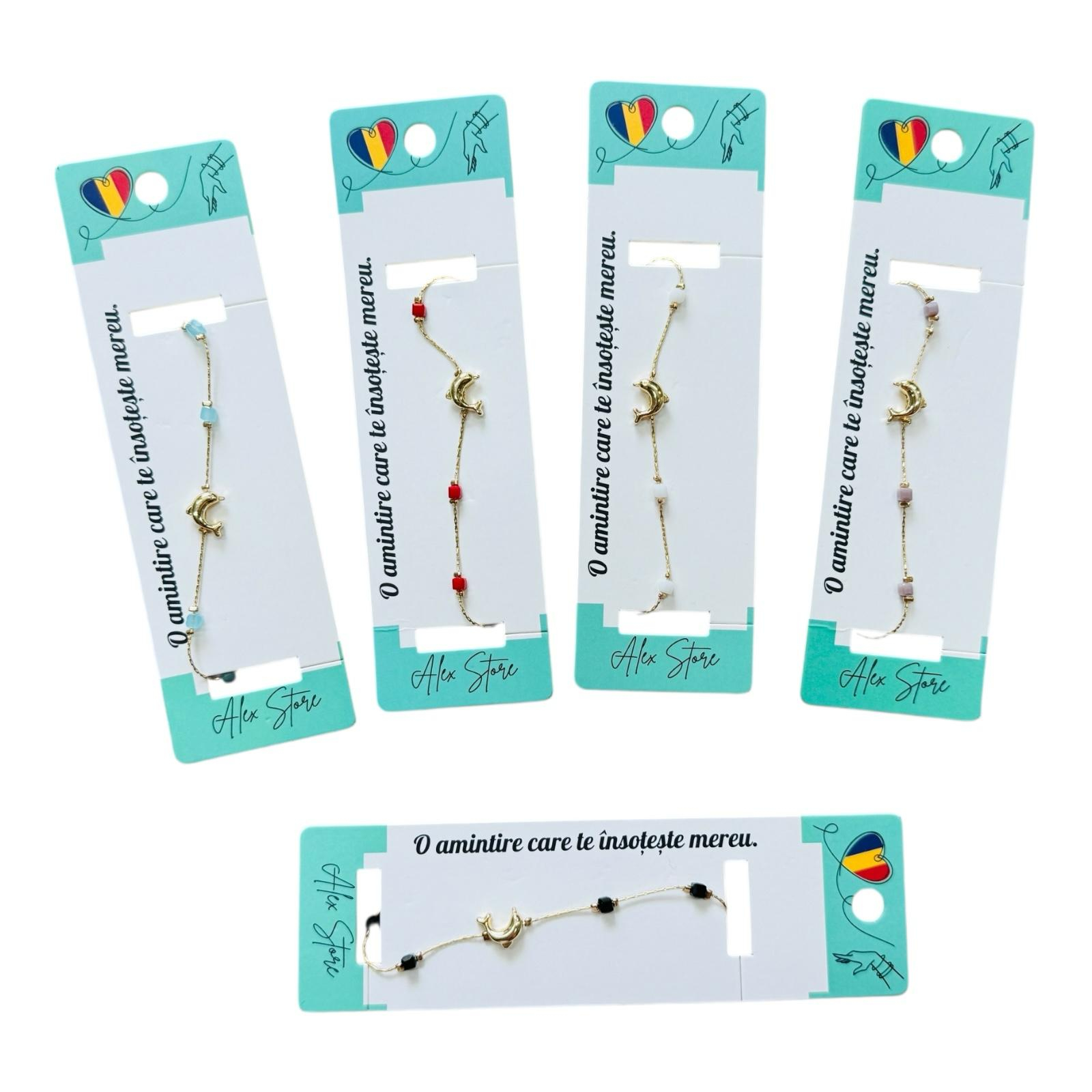 Bratara multicolora cu delfin din inox este un accesoriu cu vibe estival, ce aduce energie si libertate in orice tinuta. Charm-ul in forma de delfin, realizat din inox de calitate, simbolizeaza prietenia, inteligenta si conexiunea cu natura. Snurul sau margelele in culori combinate dau bratarii un aspect vesel si modern, perfect pentru vara, festivaluri sau look-uri casual. Reglabila si confortabila, bratara este potrivita pentru femei, adolescenti sau chiar copii care iubesc tematica marina. Alege bratara cu delfin multicolor pentru a-ti completa stilul cu un simbol al bucuriei si libertatii!
