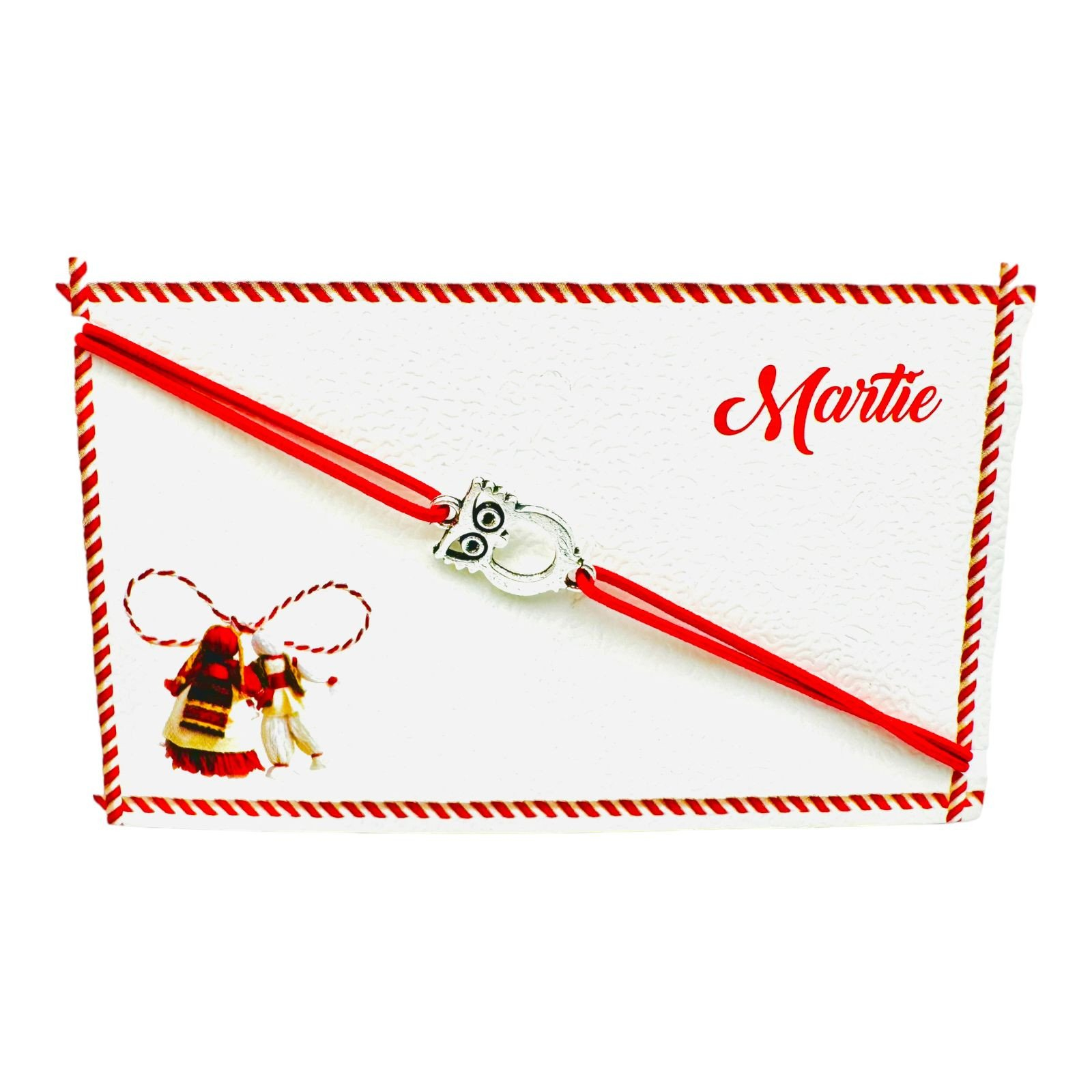 Bratara reglabila Martisor, snur elastic, Bufnita Inteleapta, model 2025,