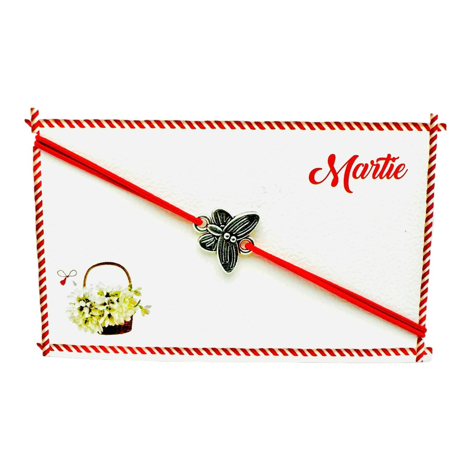 Bratara reglabila Martisor, snur elastic, Fluturas, model 2025,