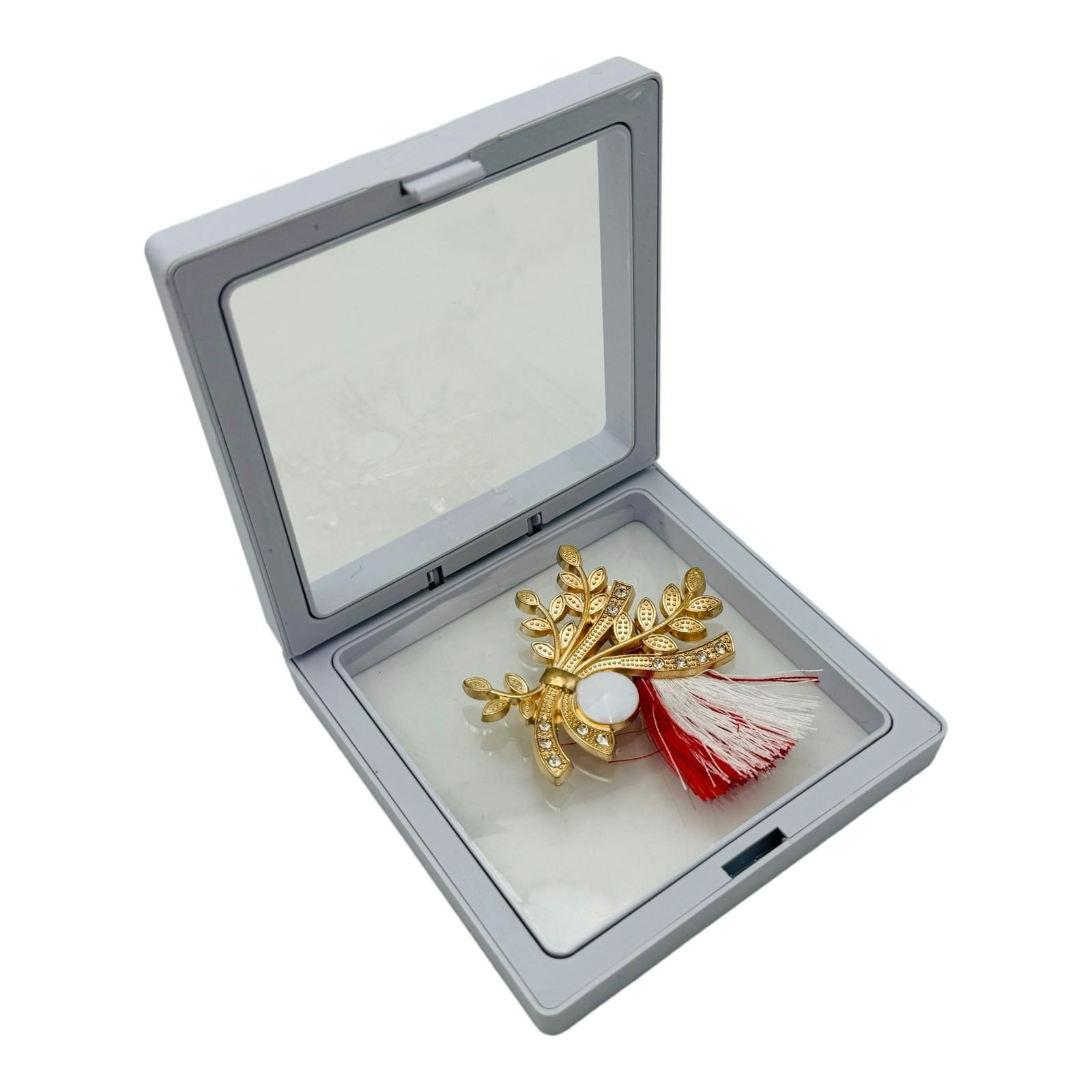 Brosa Martisor , Aranjament Floral in cutie cu expunere 3D (alb/negru), 8.5×8.5×2cm
