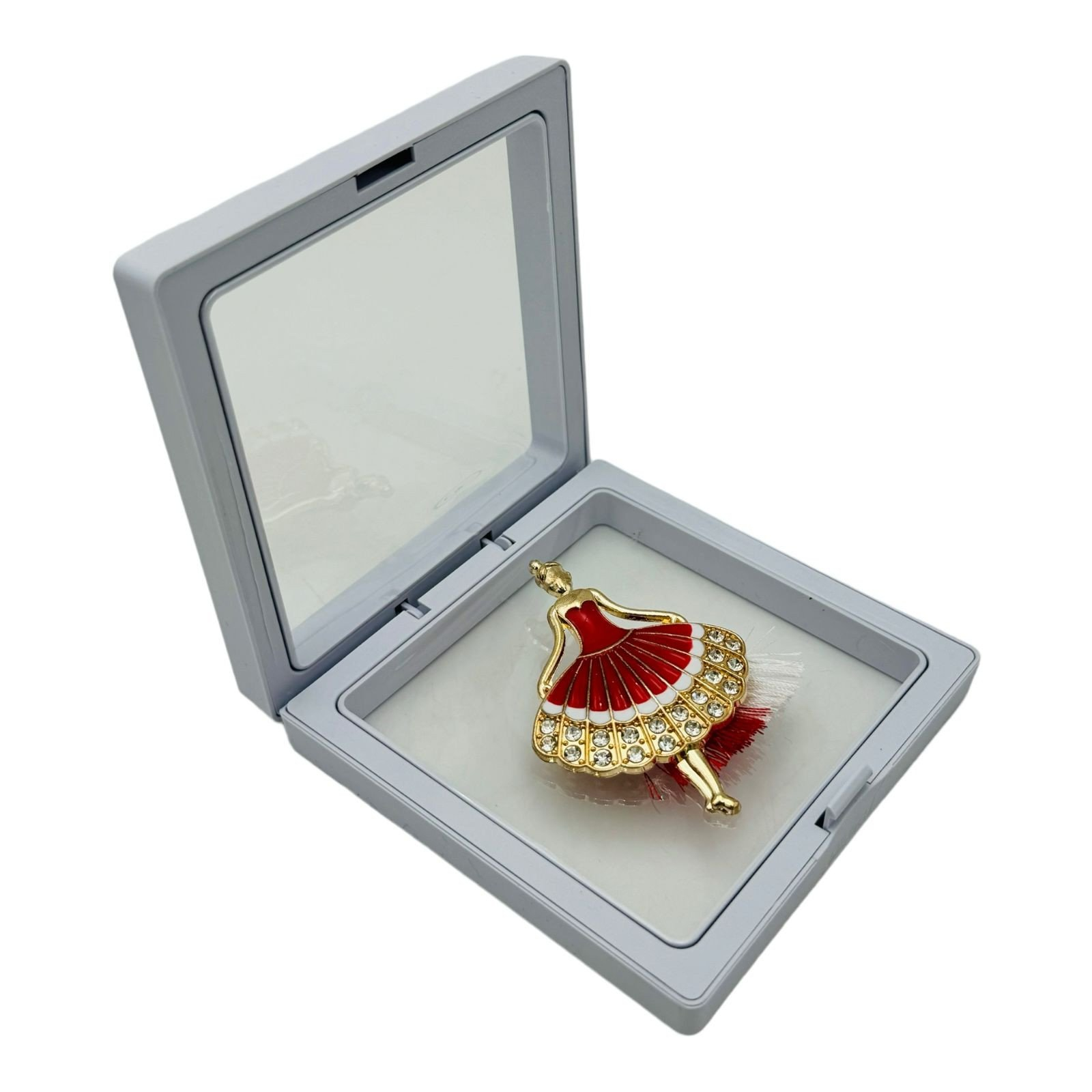 Brosa Martisor, Balerina Rosie in cutie cu expunere 3D (alb/negru), 8.5×8.5×2cm